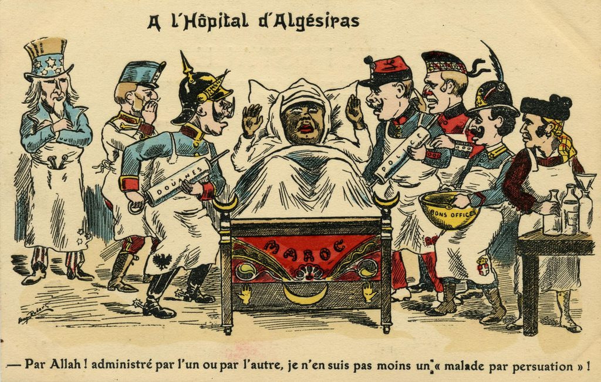 1906 A l'Hôpital d'Algésiras. Par Allah! Administré par l'un ou par l'autre, je n'en suis pas moins un 'malade par persuation' !