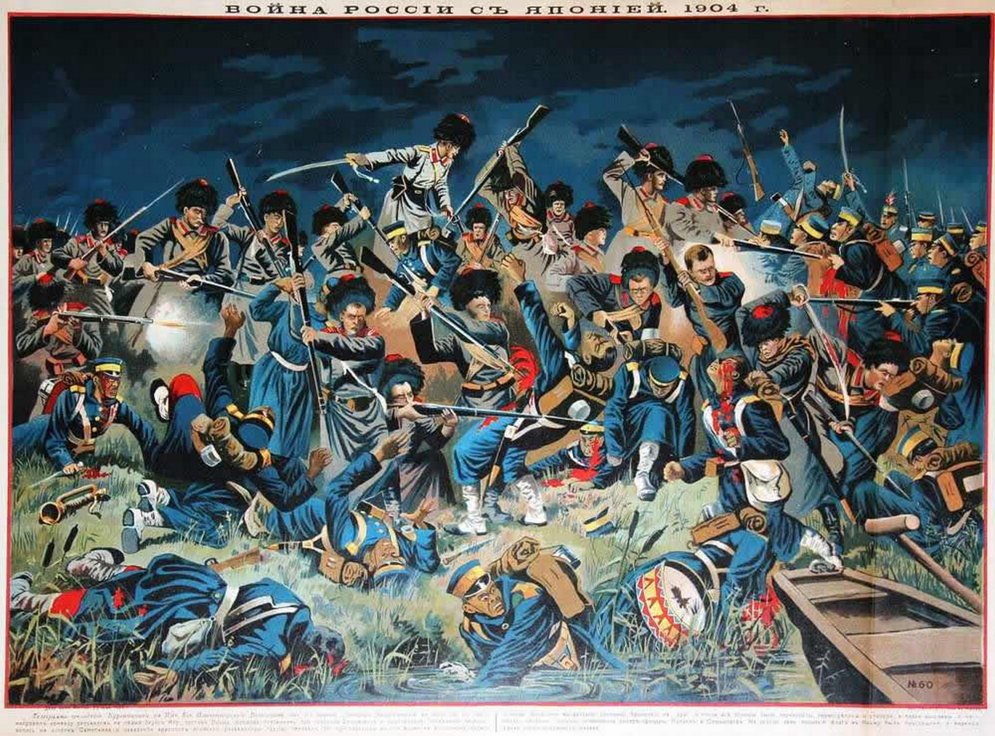 1904 A fierce hand-to-hand combat scene between Russian soldiers and Japanese forces