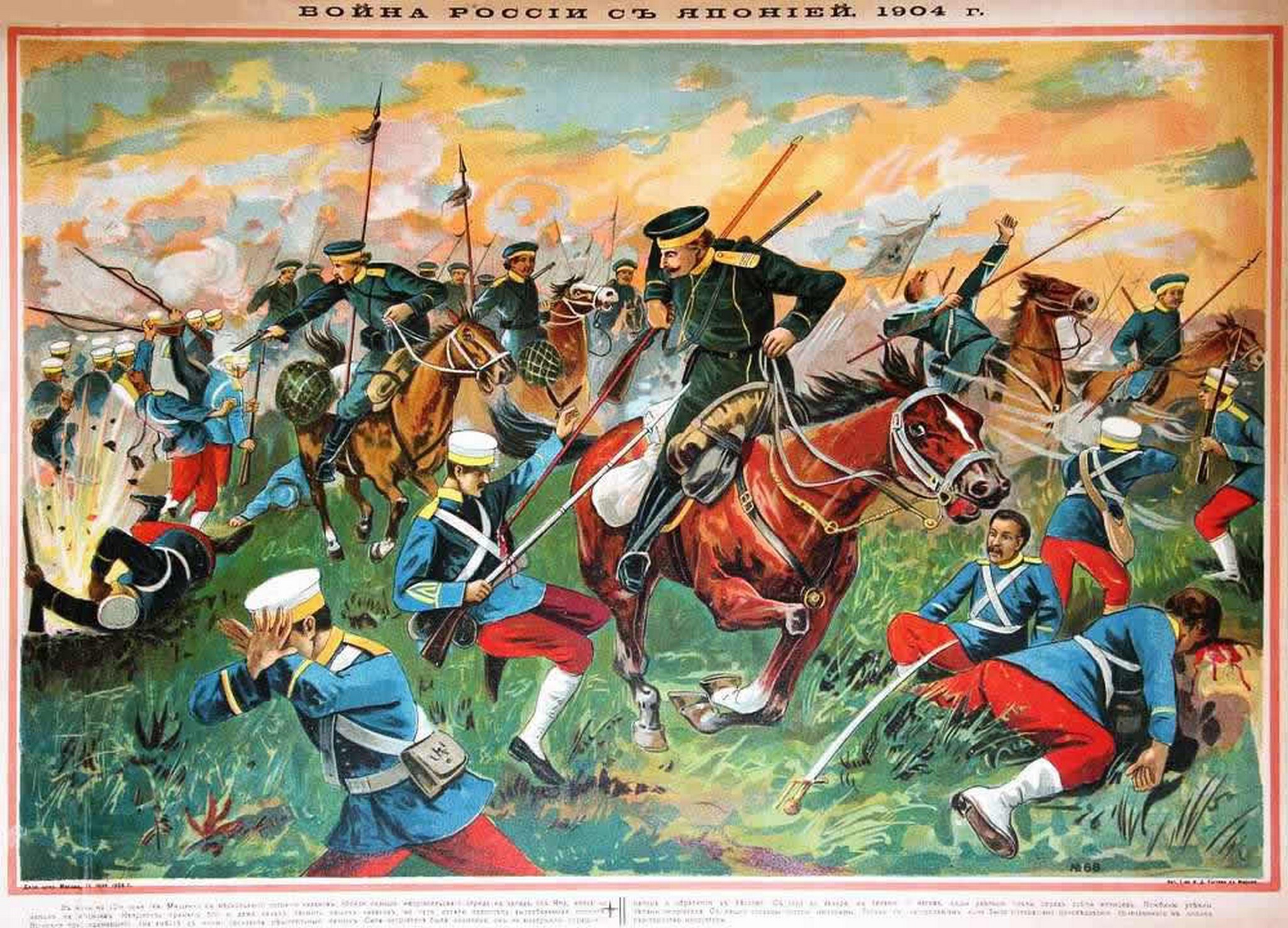 1904 A fierce hand-to-hand combat scene or cavalry skirmish between Russian soldiers and Japanese forces