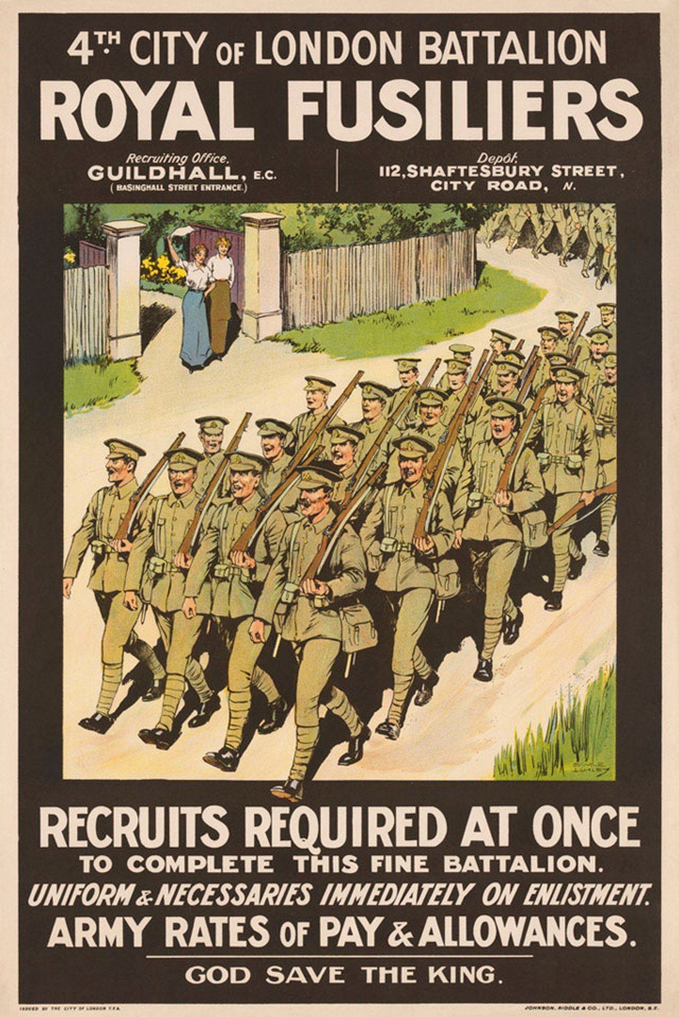 1915 4th City of London Battalion Royal Fusiliers. Recruits Required At Once Source: National Army Museum, Online Collection