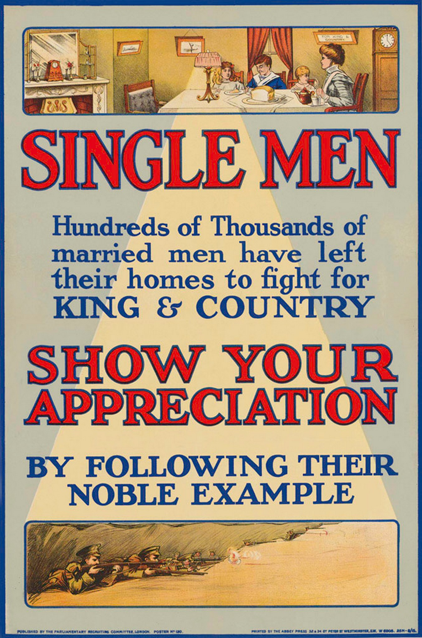 1915 Single Men Show Your Appreciation by Following Their Noble Example Source: National Army Museum, Online Collection