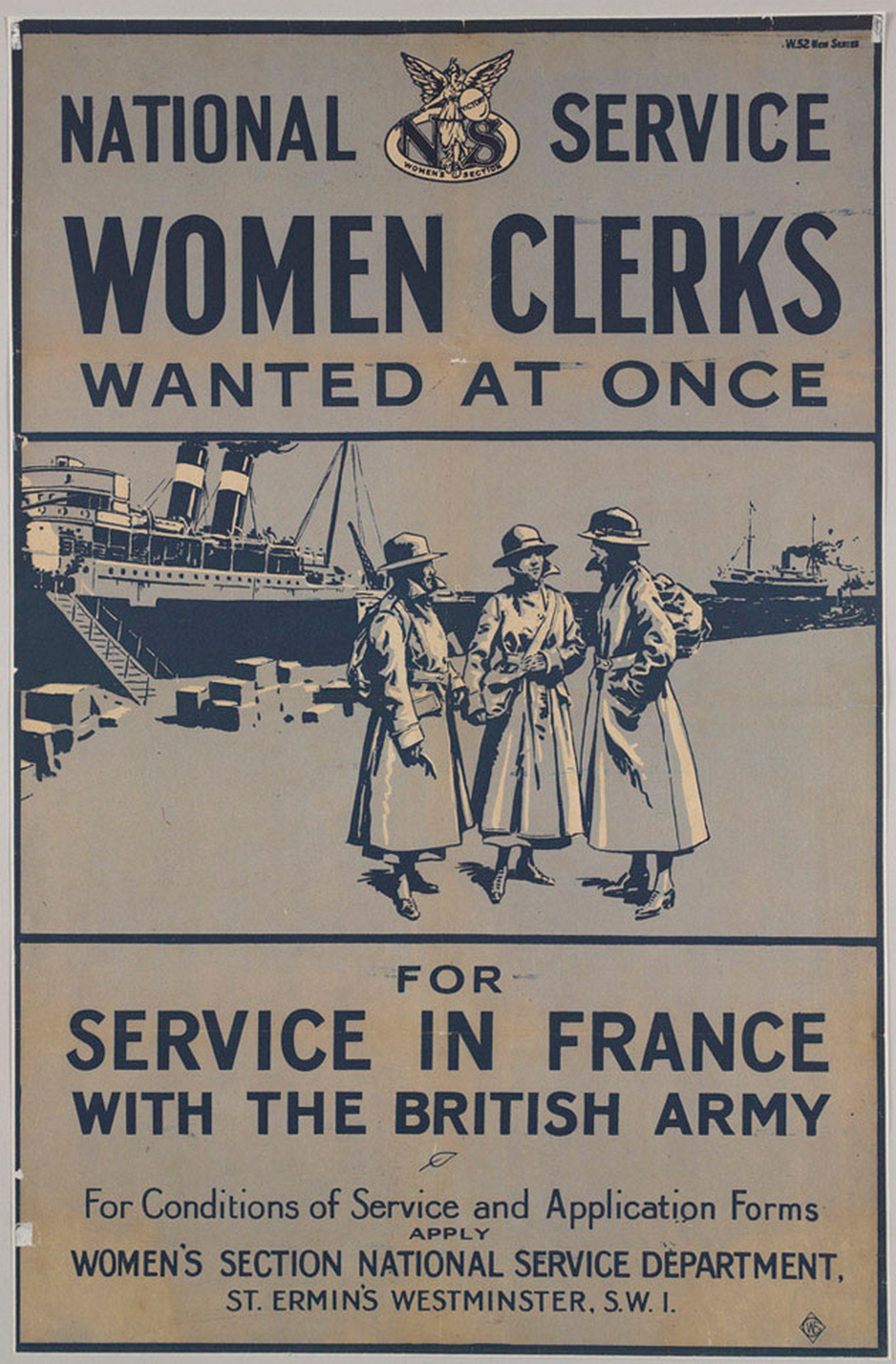 1917 Women Clerks Wanted At Once for Service In France With The British Army Source: National Army Museum, Online Collection