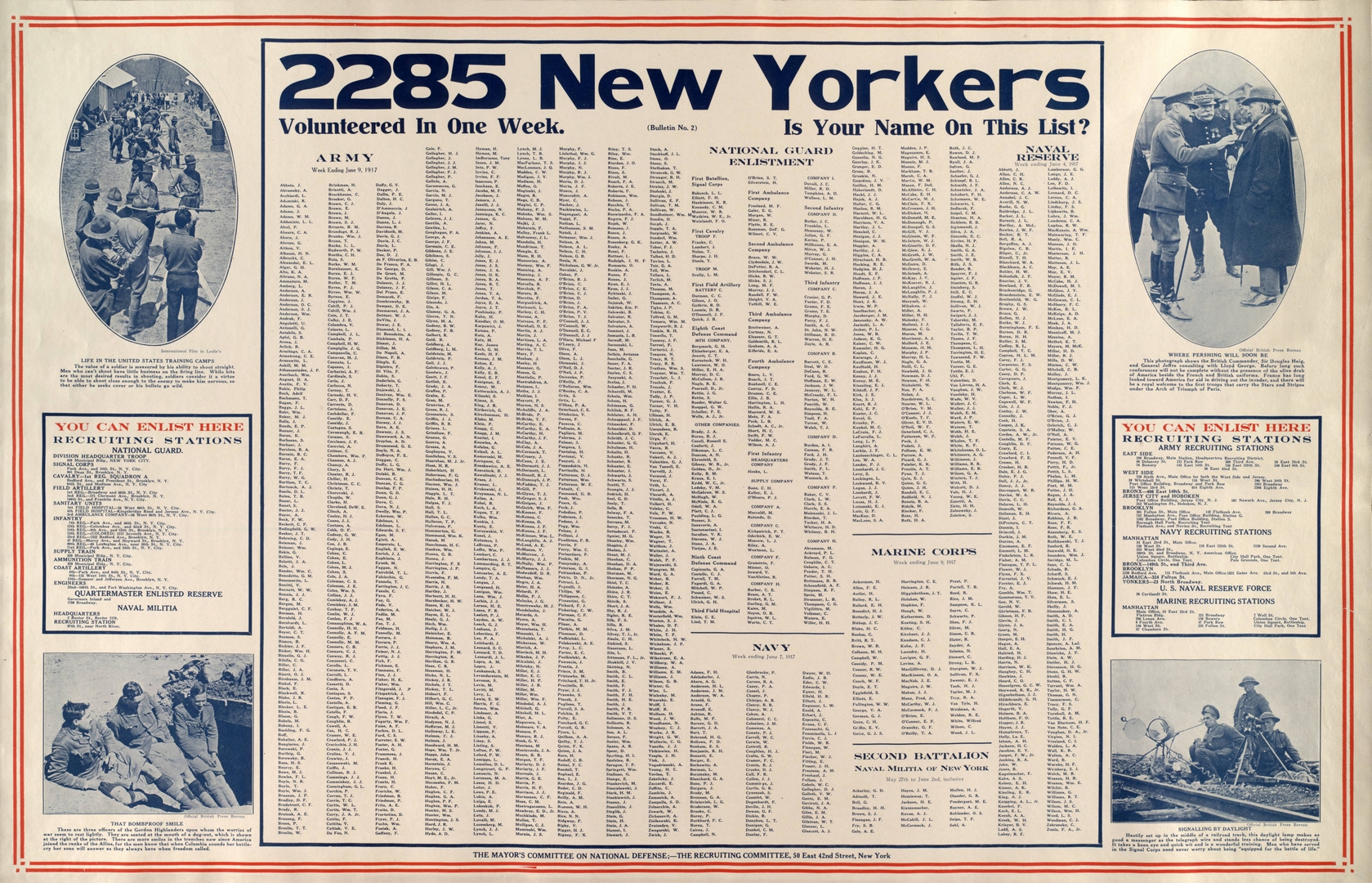 1917 2285 New Yorkers Volunteered In One Week. Is Your Name On This LIst