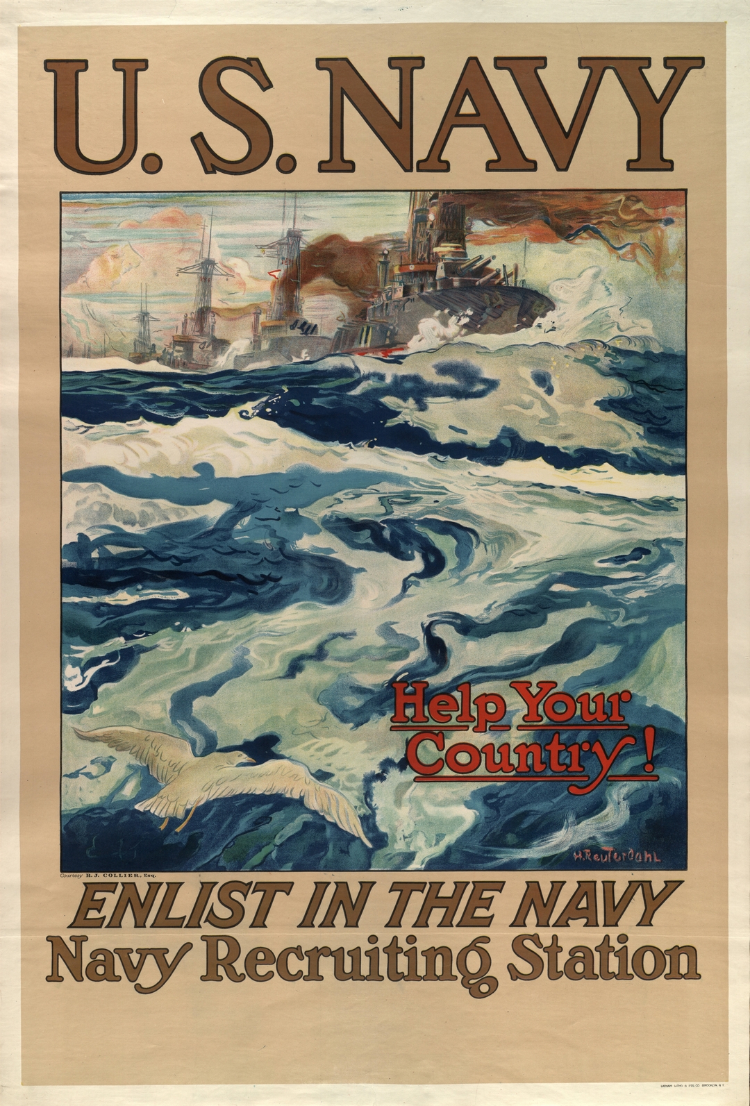 1917 U.S. Navy. Help Your Country! Enlist In The Navy
