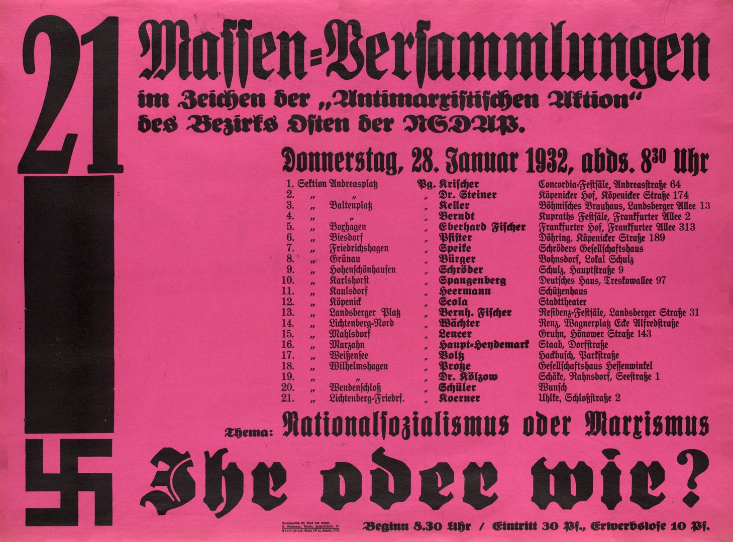 1932 21 Massen-Versammlungen im Zeichen der 'Antimarxistischen Aktion' des Bezirks Osten der NSDAP