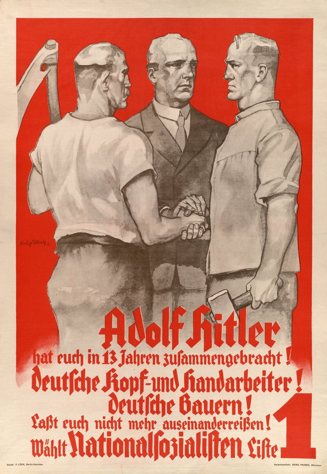 1932 Adolf Hitler hat euch in 13 Jahren zusammengebracht! Deutsche Kopf- und Handarbeiter! Deutsche Bauern!