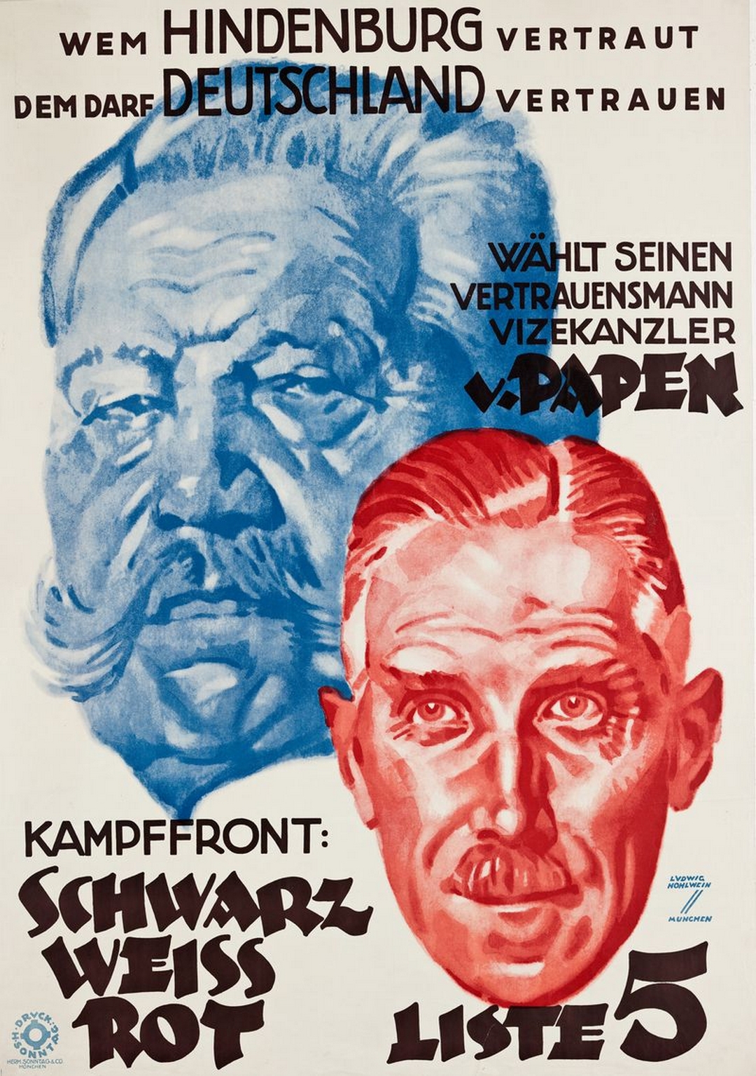 1932 Hindenburg & Papen. Kampfront Schwarz Weis Rot Liste 5