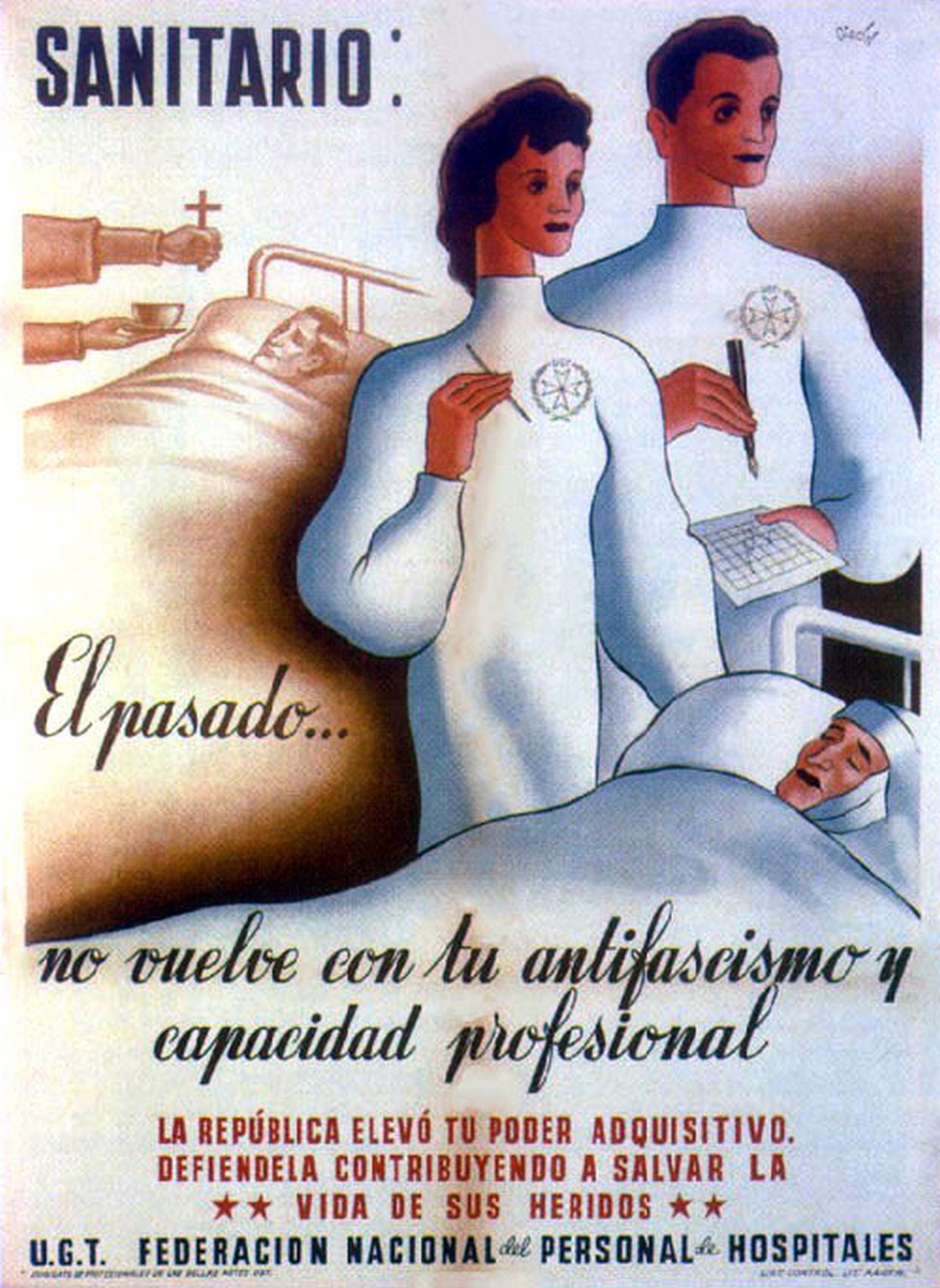 1937 Sanitario. El pasado… no vuelve con tu atifascismo y capacidad profesional. UG.T.