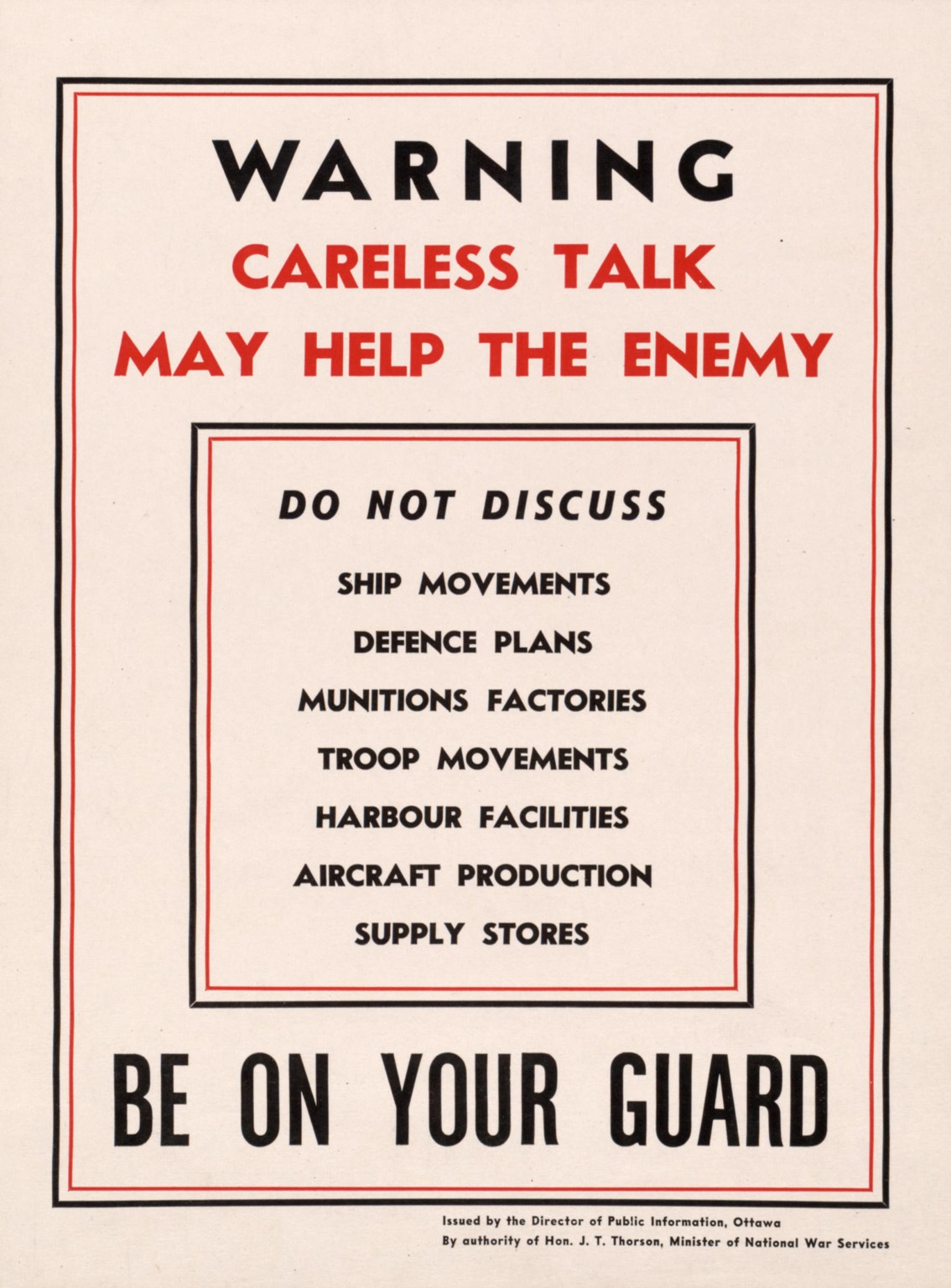 1942-45 Warning Careless Talk May Help The Enemy. Be On Your Guard