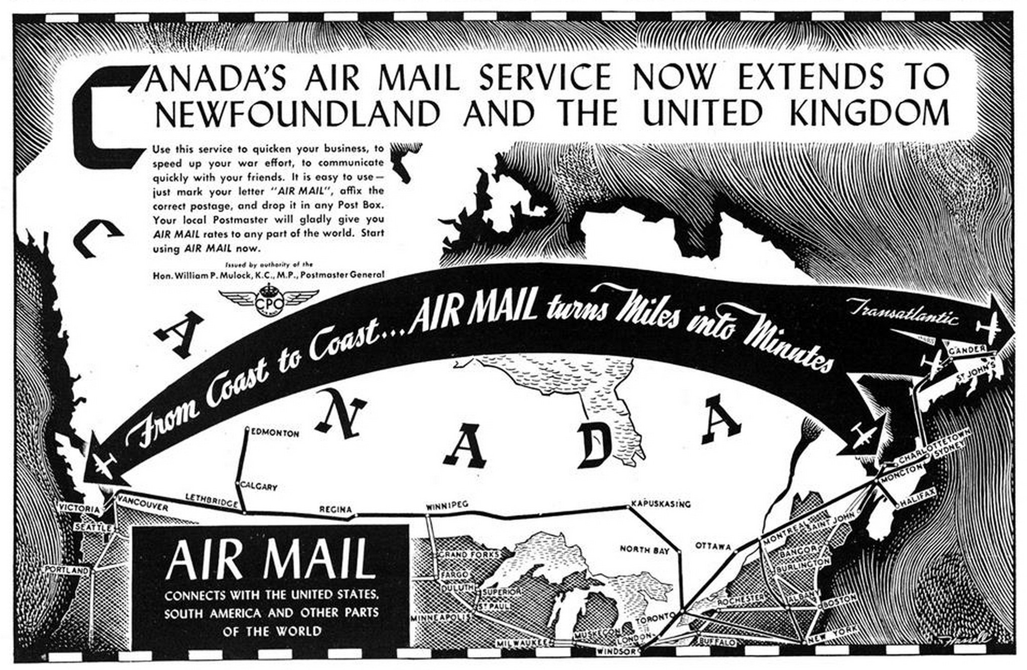 1942 Canada’s Air Mail Service Now Extends To Newfoundland And The United Kingdom