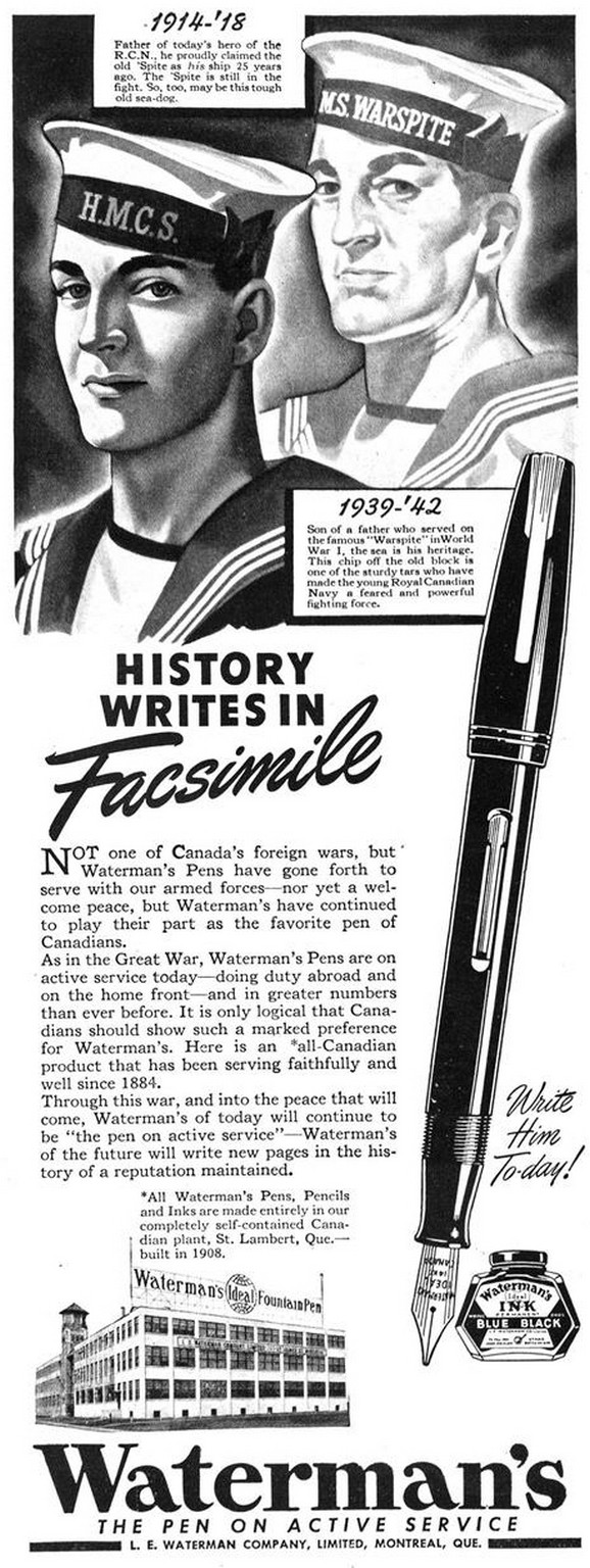 1942 History Writes In Facsimile. Waterman’s