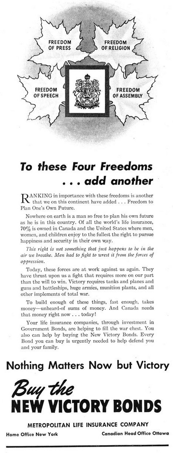1942 To these Four Freedoms … add another. Buy The New Victory Bonds
