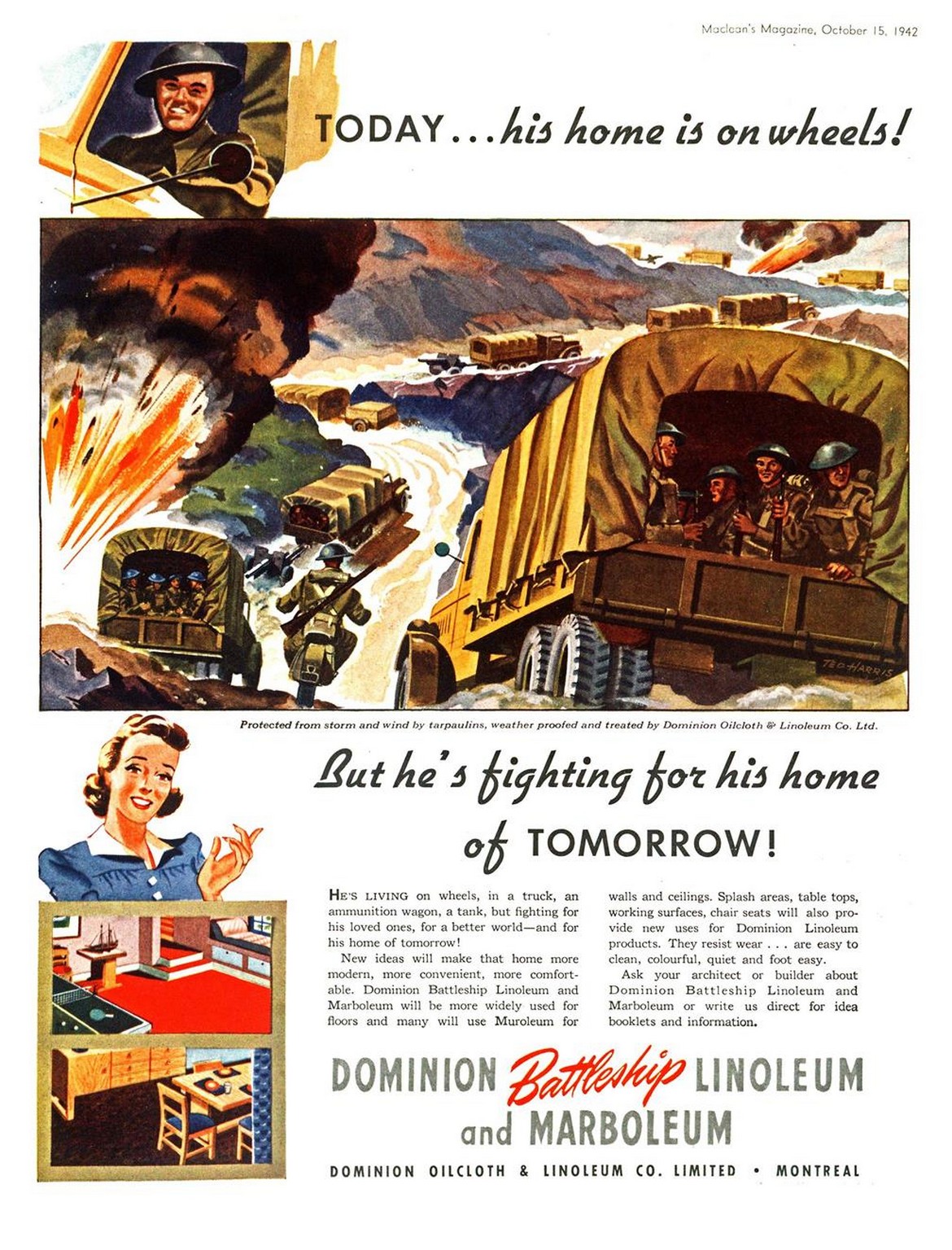 1942 Today... his home is on wheels! But he's fighting for this home of Tomorrow! Dominion Battleship