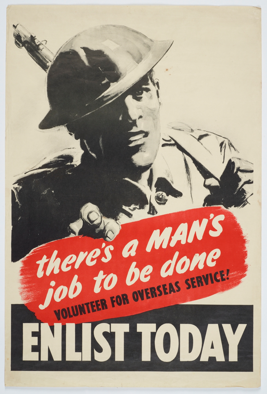 Poster, ‘there’s a MAN’S job to be done’, April 1940, Wellington, by New Zealand Army. Purchased 2007. Te Papa (GH015836)
