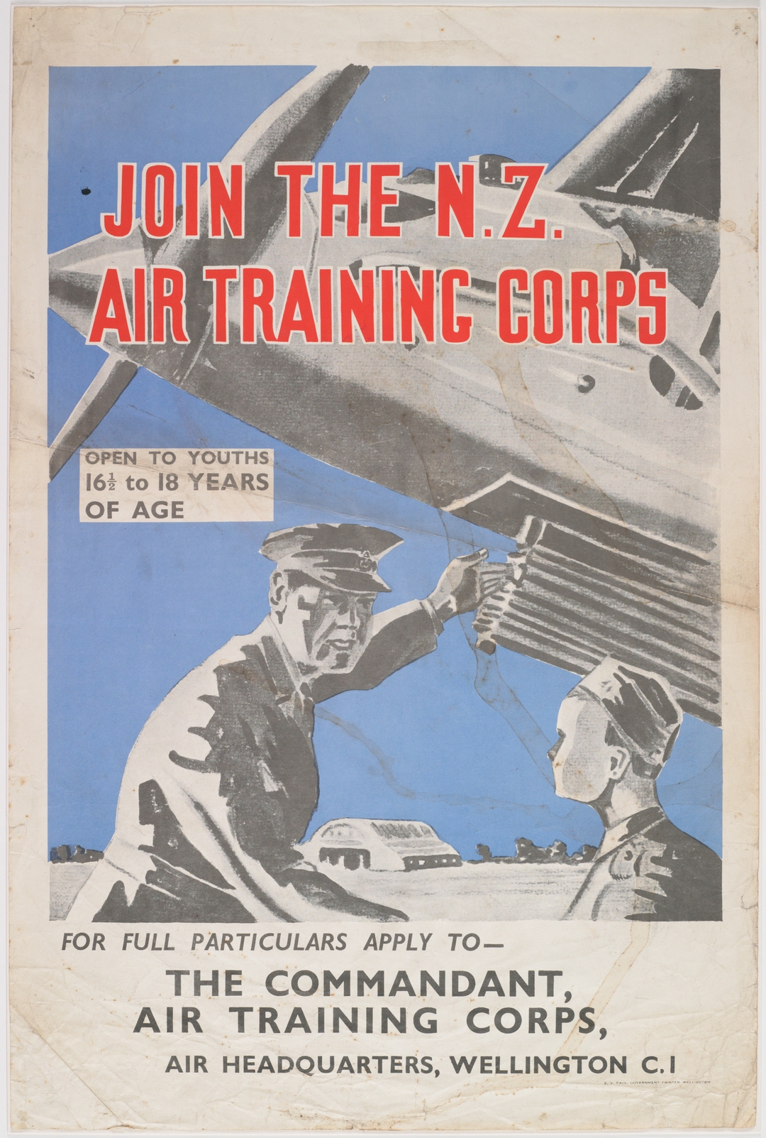 Poster, ‘Join The N.Z. Air Training Corps’, 1941, Wellington, by E Paul. Loan from Mr C.H. Andrews, 1967. Te Papa (GH014038)