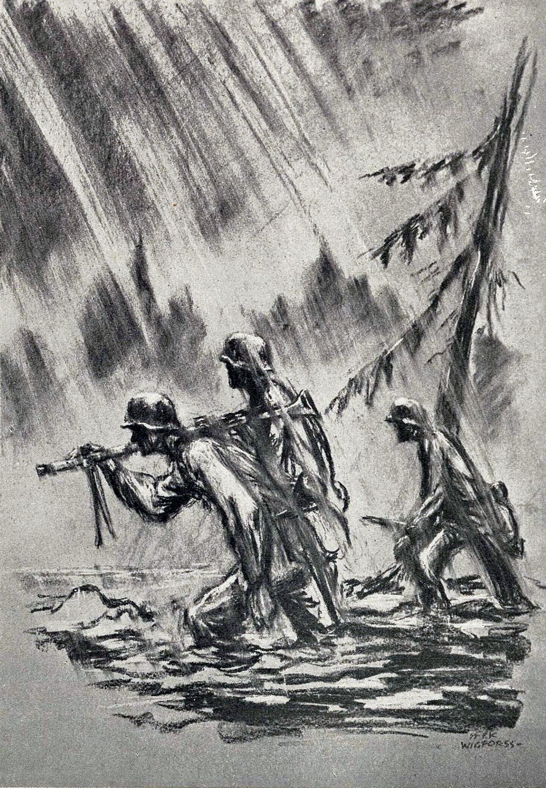 Drenched and knee-deep in mud, our men advance