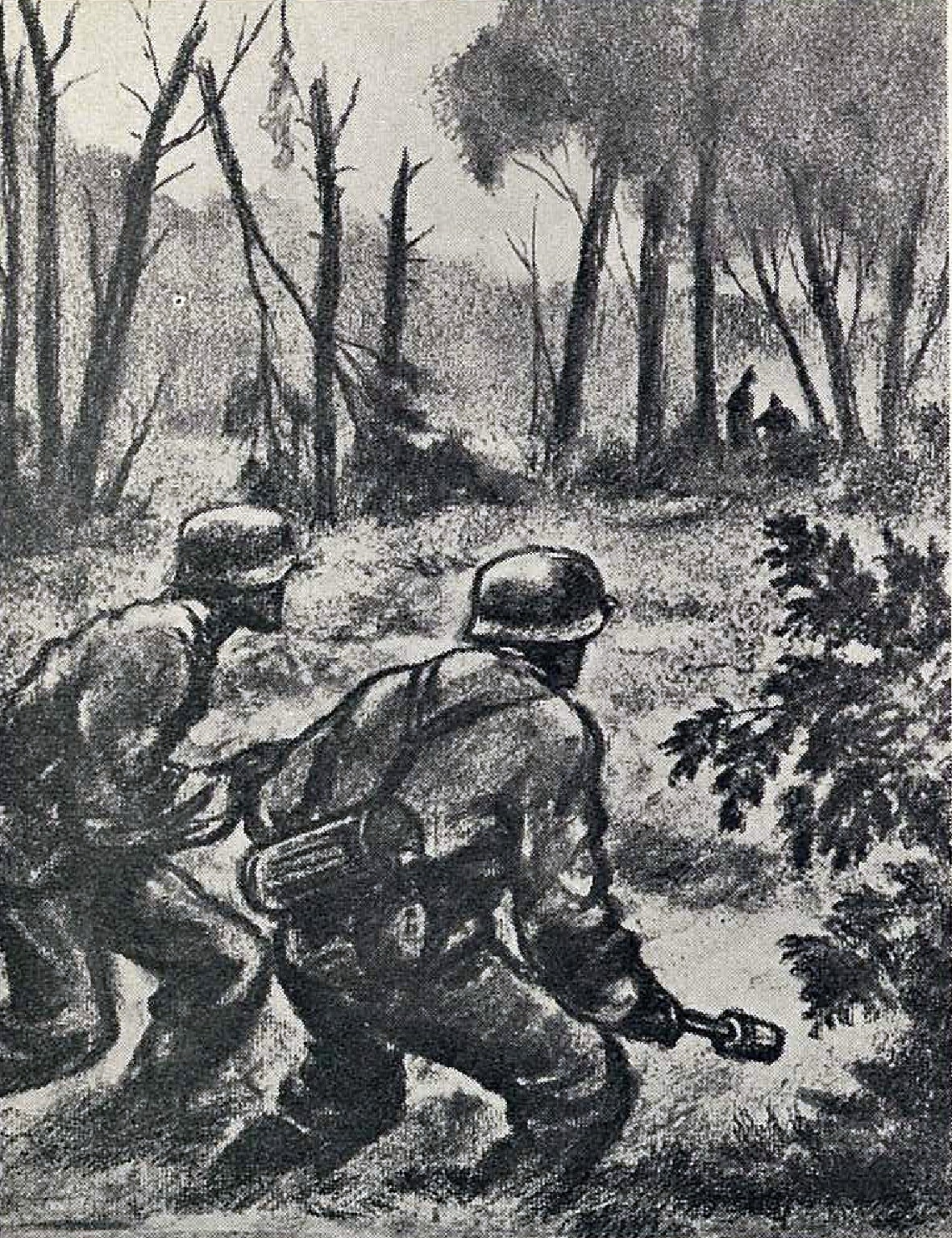 Shadows in the glow of a fire in the forest