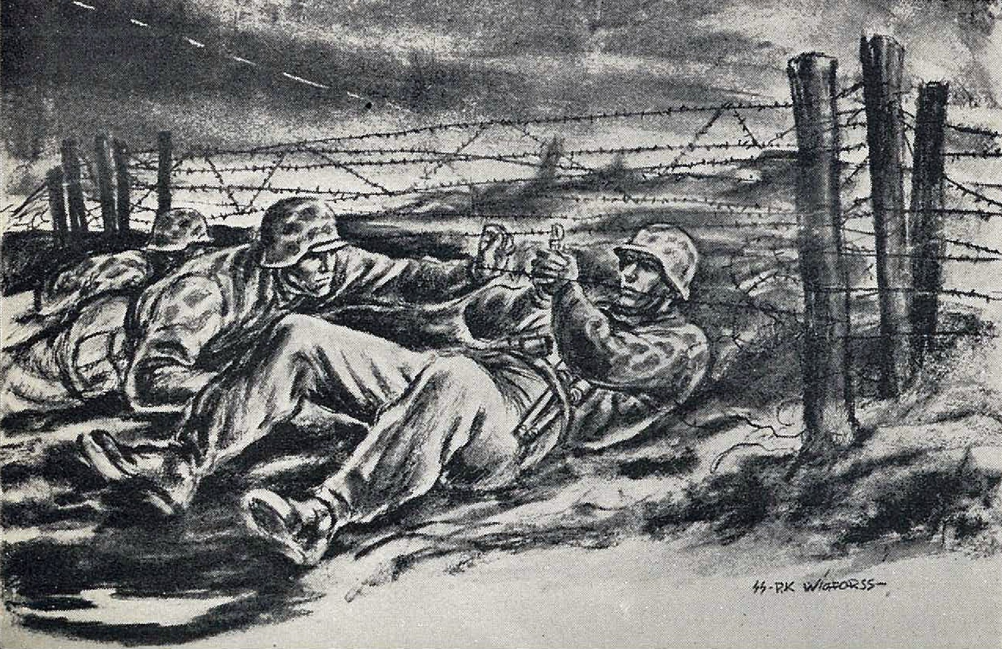 The barbed wire barriers that are everywhere in the terrain slow down the advance