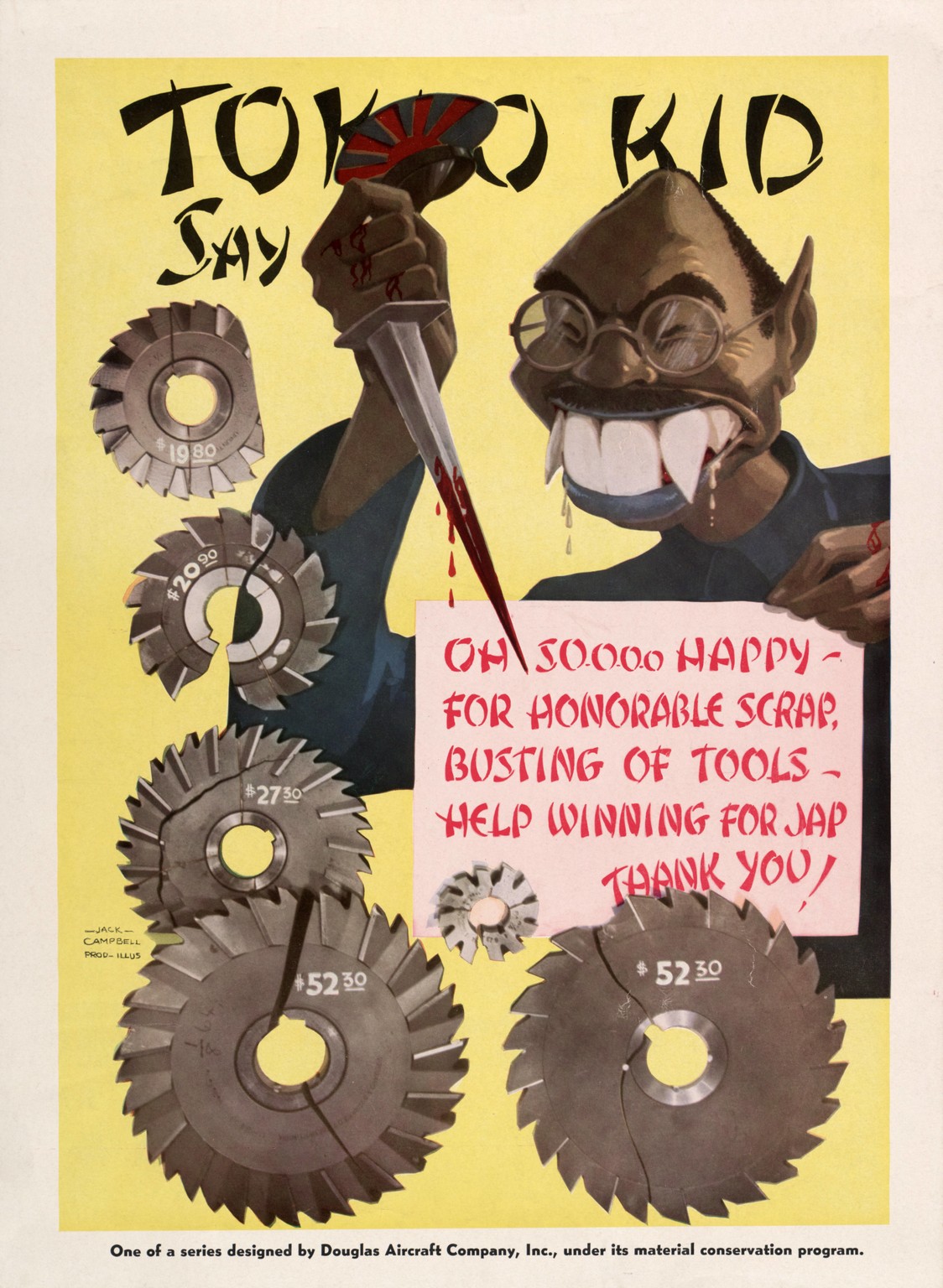 1942 Tokio Kid Say. Oh So-o-o-o Happy – For Honorable Scrap, Busting of Tools – Help Winning For Jap. Thank You!