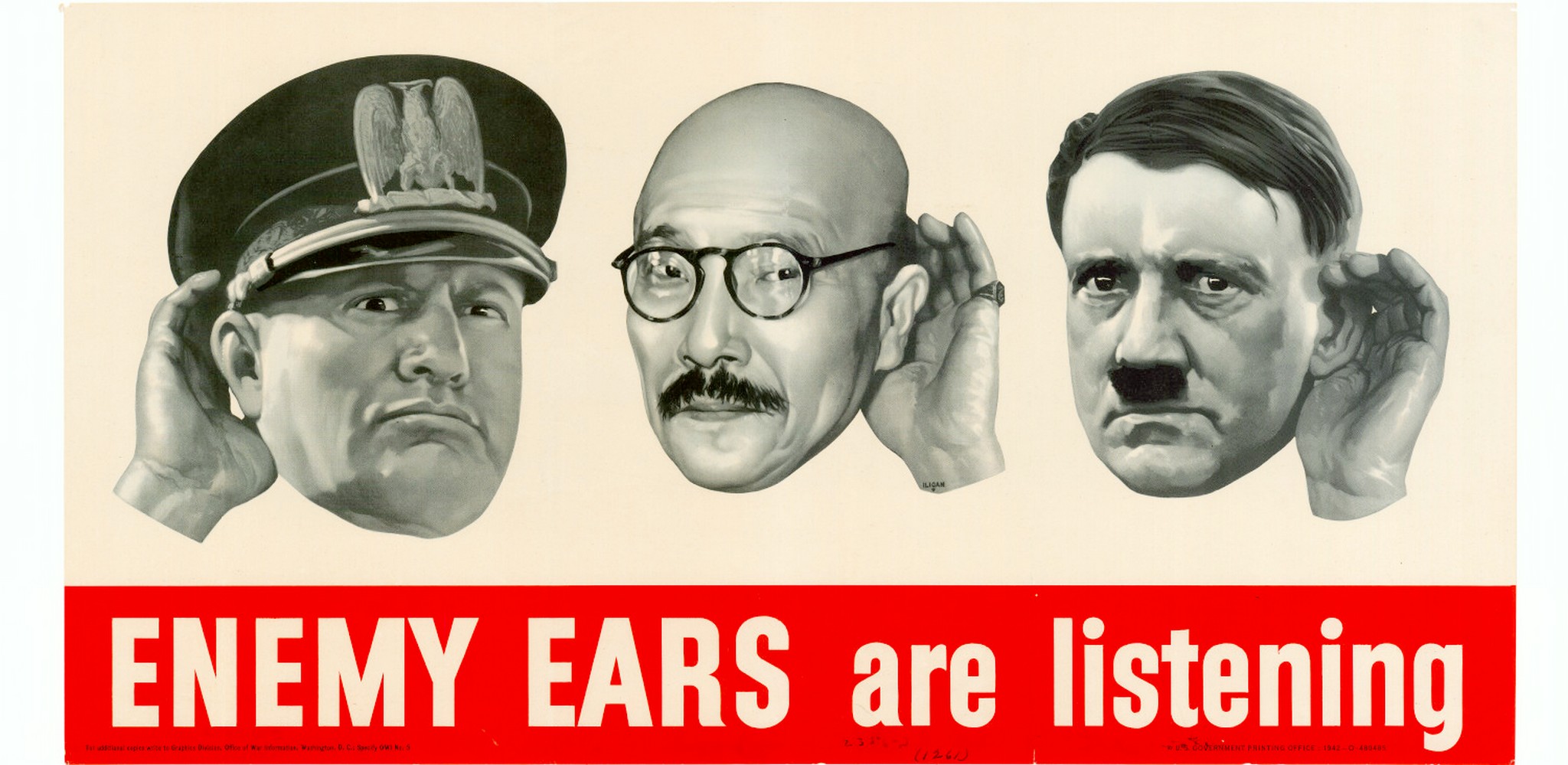 Iligan, Ralph, 1893-1960. Enemy ears are listening., poster, 1942; Washington D.C.. (digital.library.unt.edu/ark:/67531/metadc148/m1/1/: accessed November 26, 2024), University of North Texas Libraries, UNT Digital Library, digital.library.unt.edu; crediting UNT Libraries Government Documents Department.