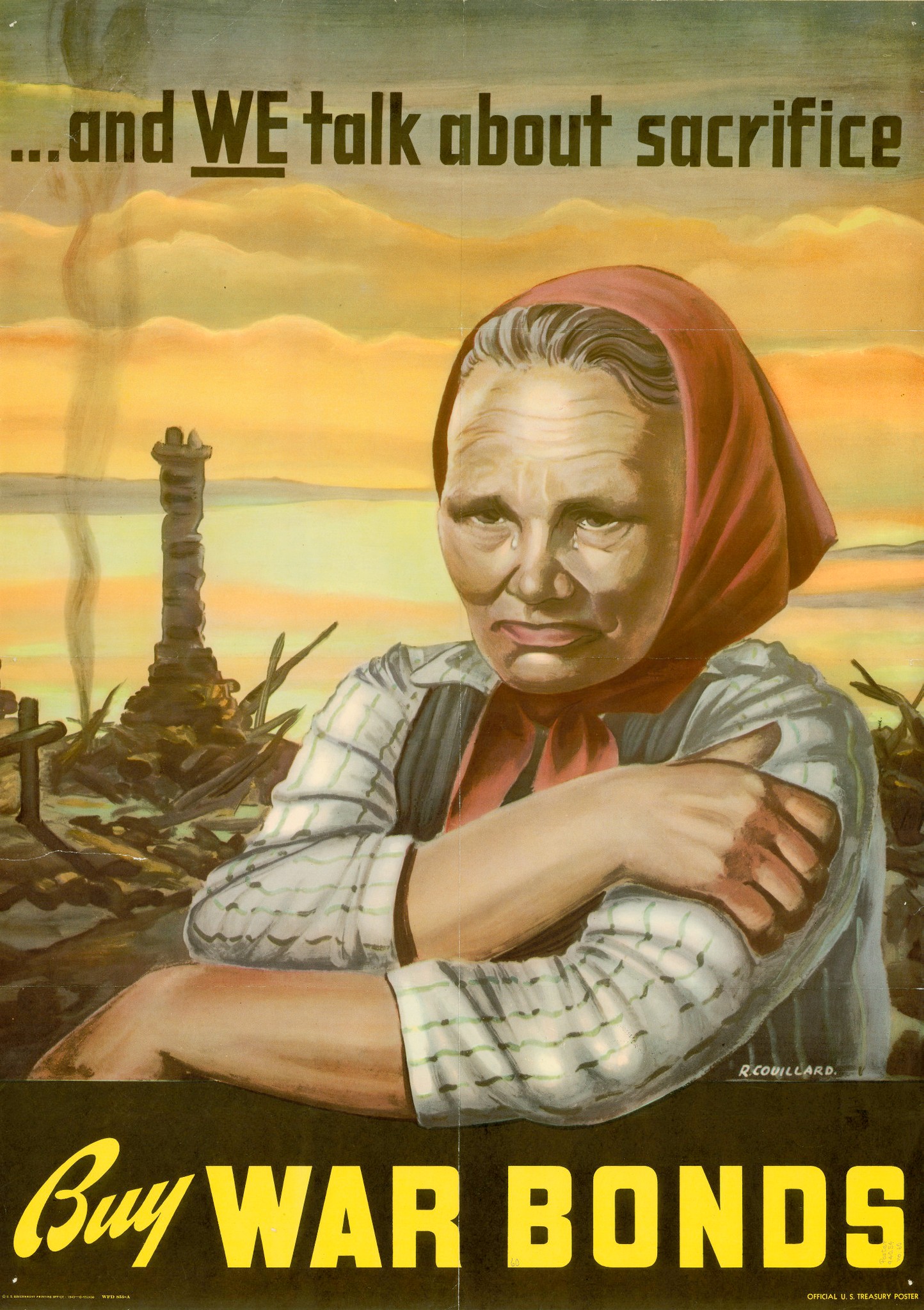 Couillard, R. And we talk about sacrifice: buy war bonds., poster, 1943; [Washington D.C.]. (digital.library.unt.edu/ark:/67531/metadc561/m1/1/: accessed November 25, 2024), University of North Texas Libraries, UNT Digital Library, digital.library.unt.edu; crediting UNT Libraries Government Documents Department.