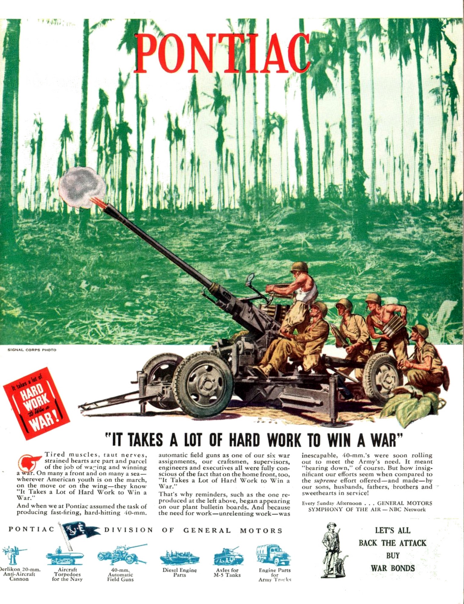 Main » 1939-1945 World War II » WW2 USA Gear and Vehicles Propaganda Collection » 1944 Pontiac. ‘It Takes A Lot Of Hard Work To Win A War’ (1)