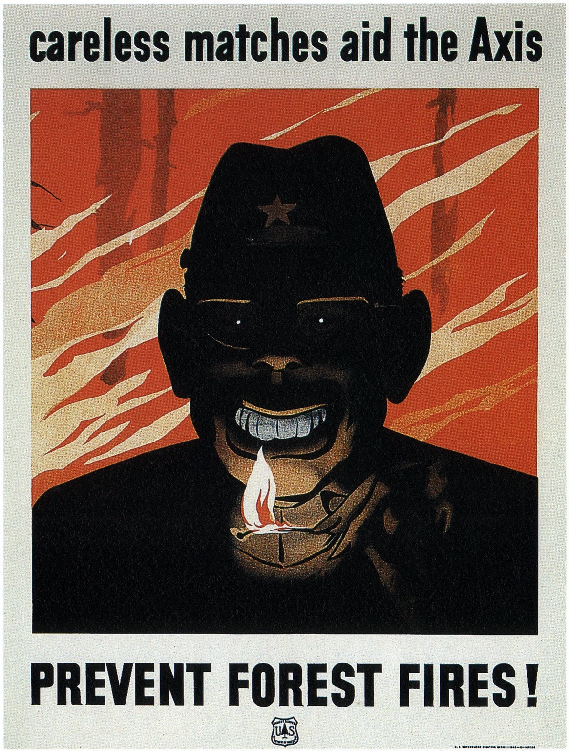 1942 careless matches aid the Axis. Prevent Forest Fires!