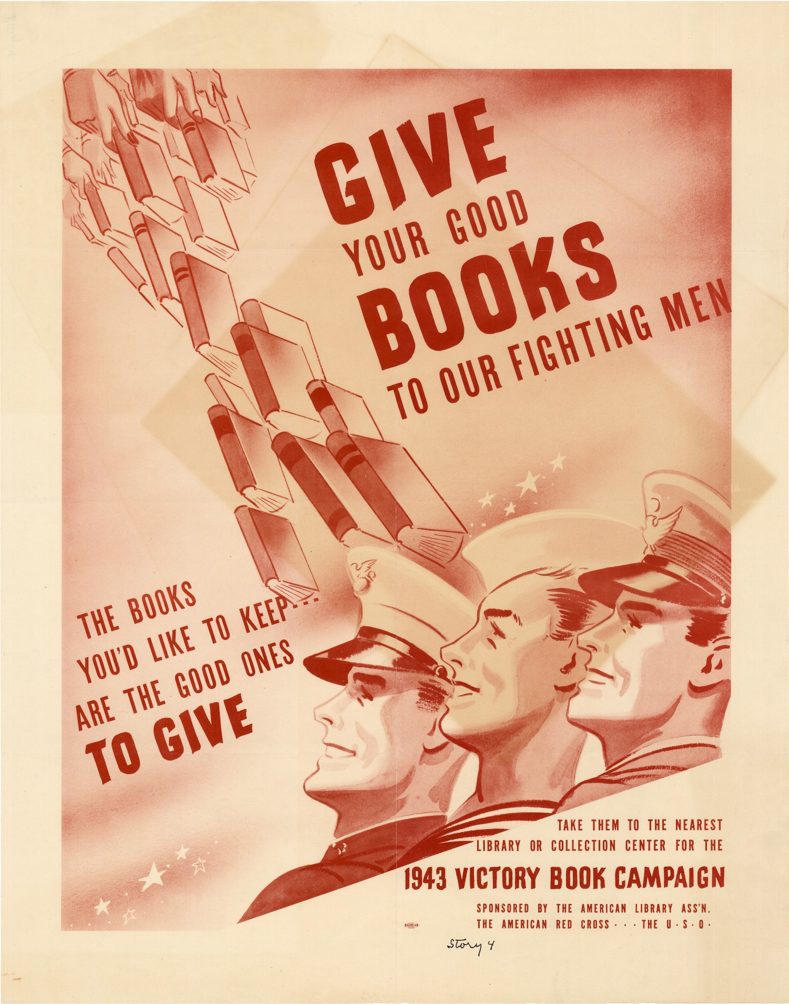 Give your good books to our fighting men : the books you’d like to keep are the good ones to give., poster, 1943; (digital.library.unt.edu/ark:/67531/metadc527/m1/1/: accessed November 26, 2024), University of North Texas Libraries, UNT Digital Library, digital.library.unt.edu; crediting UNT Libraries Government Documents Department.