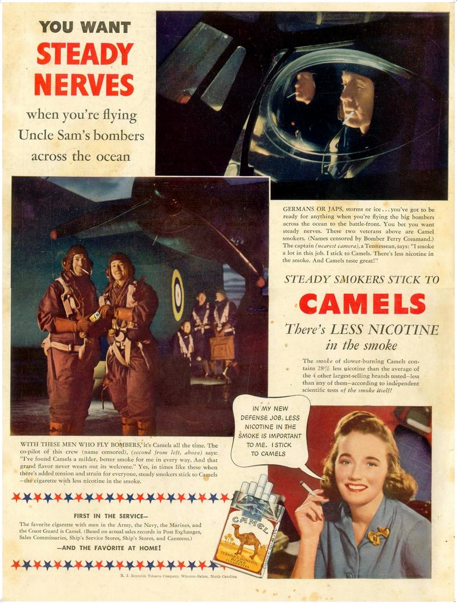 1943 You Want Steady Nerves when you’re flying Uncle Sam’s bombers across the ocean, Steady Smokers Stick To Camels