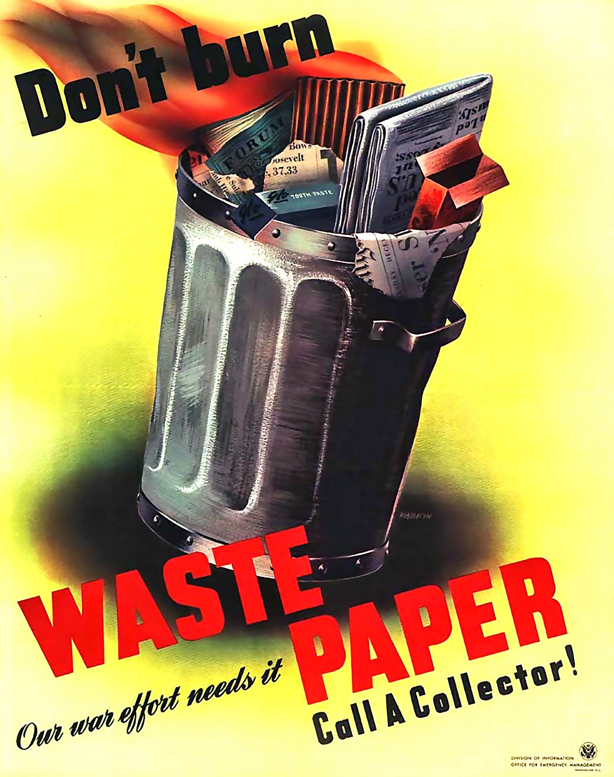 1944 Don't burn Waste Paper. Call A Collector