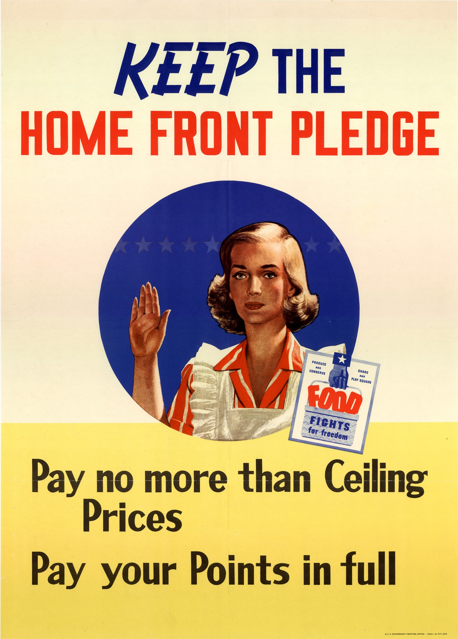 United States. Office of Price Administration. Keep the home front pledge : pay no more than ceiling prices, pay your points in full., poster, 1944; [Washington D.C.]. (digital.library.unt.edu/ark:/67531/metadc514/m1/1/: accessed November 27, 2024), University of North Texas Libraries, UNT Digital Library, digital.library.unt.edu; crediting UNT Libraries Government Documents Department.