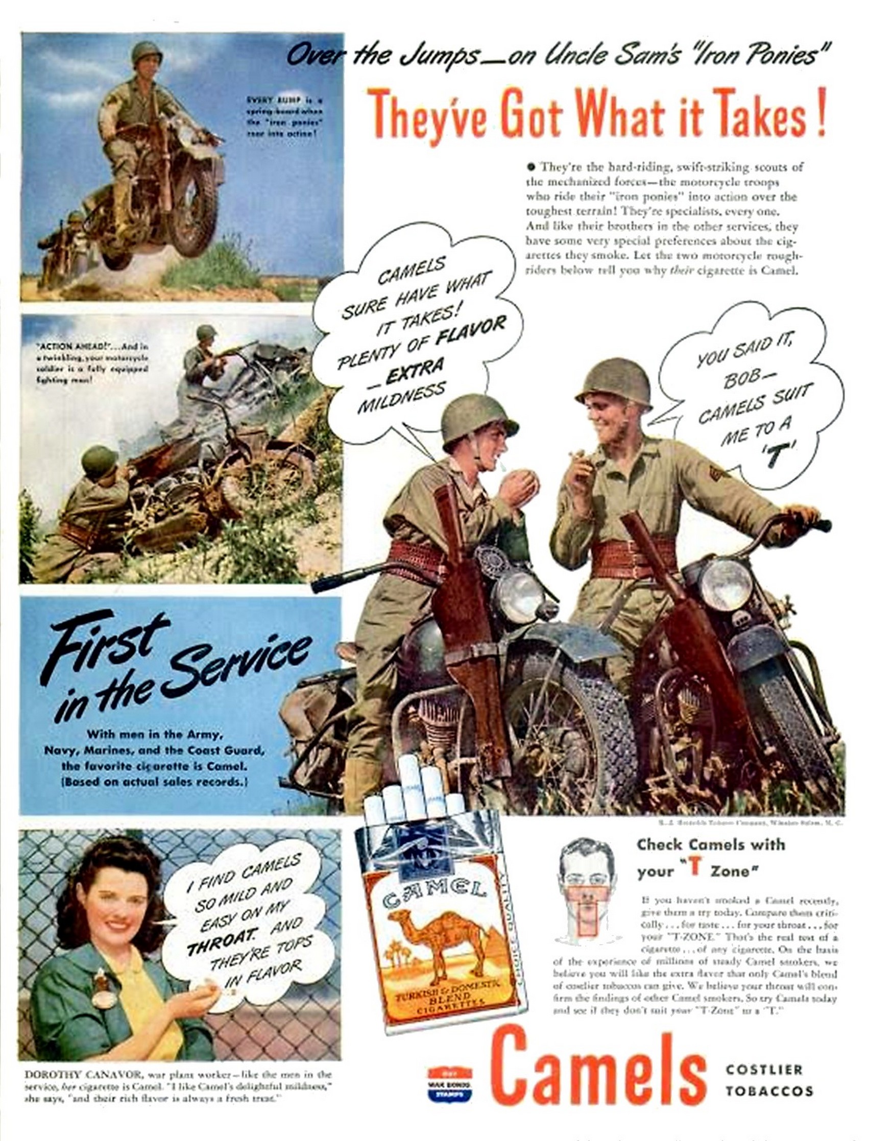 1944 Over the Jumps _ on Uncle Sam’s ‘Iron Ponies’. They’ve Got What it Takes! First in the Service. Camels
