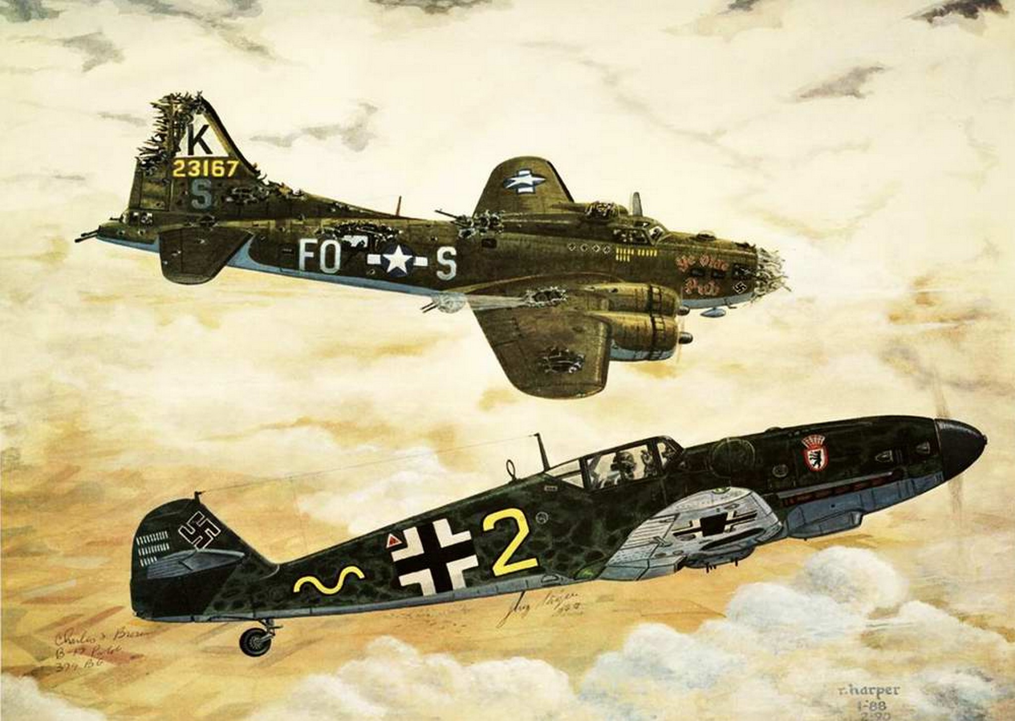 1943 American B-17 and German Me-109_ Pilots Charles Brown and Franz Stigler in the skies over Bremen, Germany, December 20, 1943 by Robert Harper