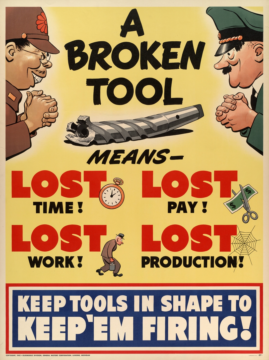 1942 A Broken Tools Means – Lost Time! Lost Pay! Lost Work! Lost Production! Keep Tools In Shape To Keep ‘Em Firing!