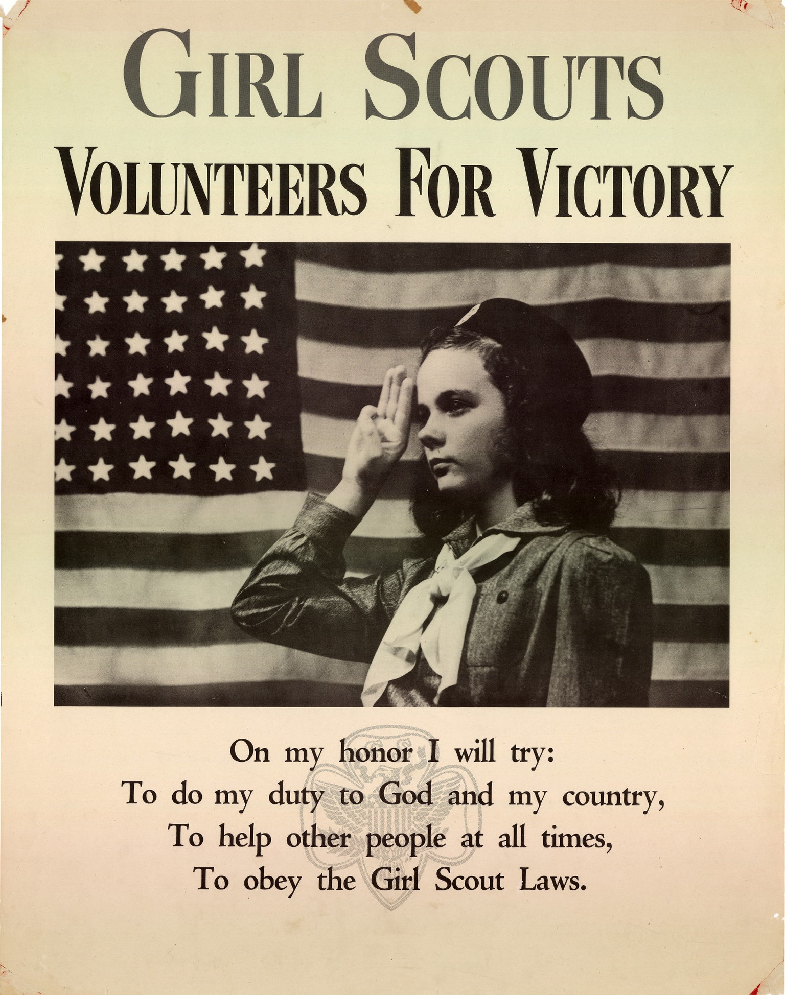 Girl Scouts : volunteers for victory., poster, 1942; (digital.library.unt.edu/ark:/67531/metadc529/m1/1/: accessed November 26, 2024), University of North Texas Libraries, UNT Digital Library, digital.library.unt.edu; crediting UNT Libraries Government Documents Department.