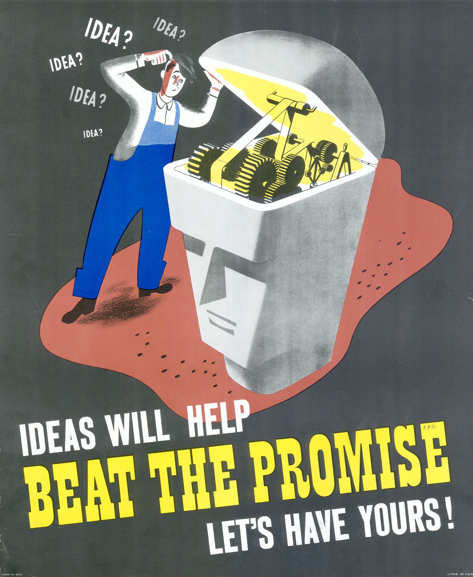 RCA Manufacturing Company, inc. Ideas will help beat the promise : let’s have yours!, poster, 1942; (digital.library.unt.edu/ark:/67531/metadc155/m1/1/: accessed November 27, 2024), University of North Texas Libraries, UNT Digital Library, digital.library.unt.edu; crediting UNT Libraries Government Documents Department.