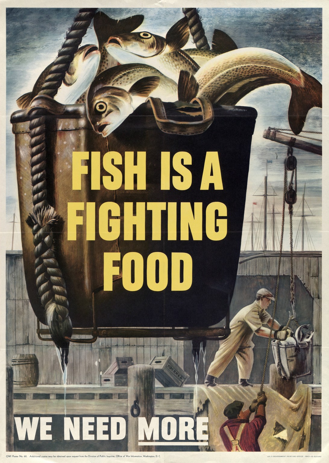 Main » 1939-1945 World War II » WW2 USA Production Posters Collection » 1943 Fish Is A Fighting Food. We Need More