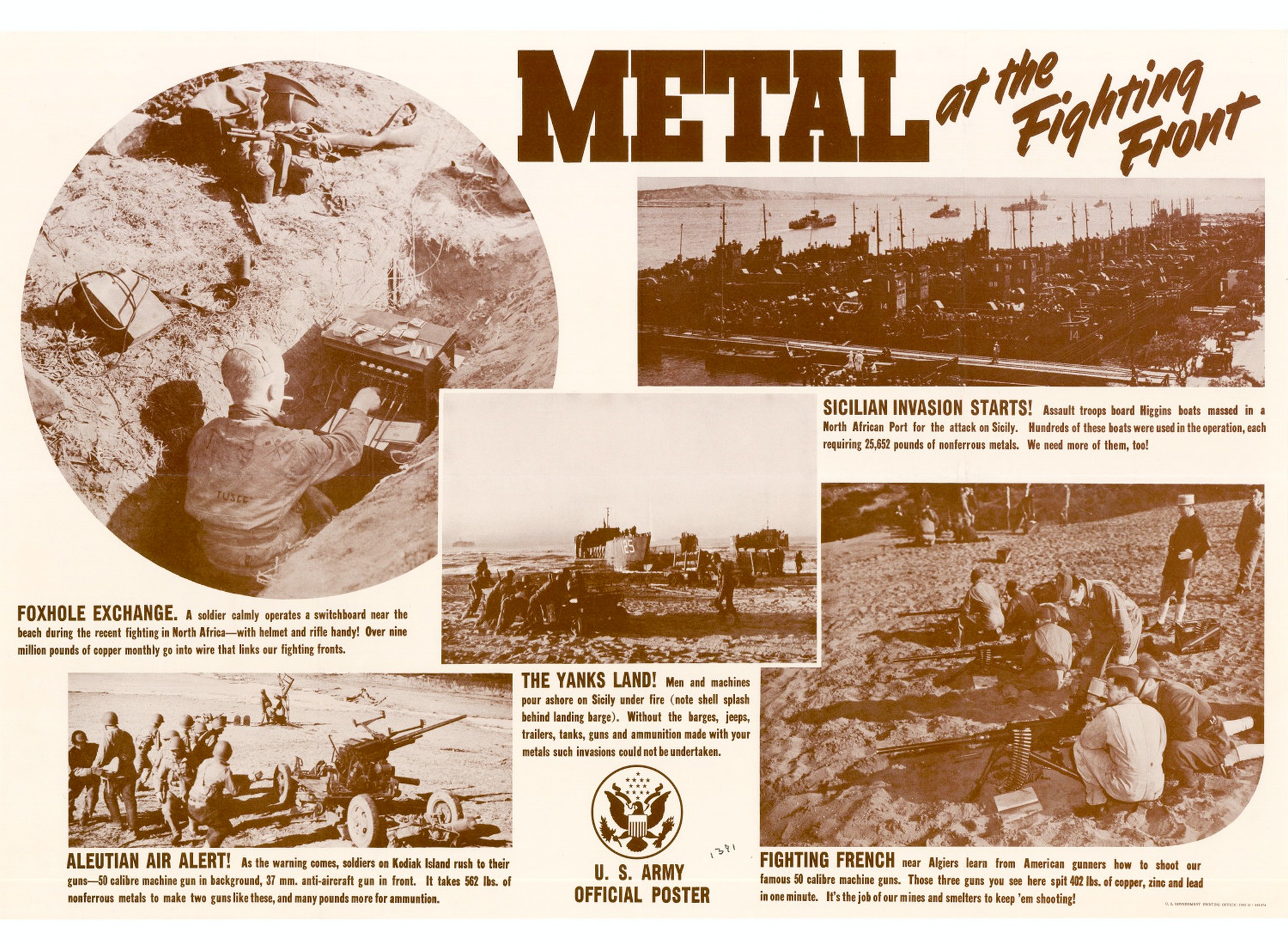United States. War Department. Bureau of Public Relations. Metal at the fighting front., poster, 1943; [Washington D.C.]. (digital.library.unt.edu/ark:/67531/metadc477/m1/1/: accessed November 29, 2024), University of North Texas Libraries, UNT Digital Library, digital.library.unt.edu; crediting UNT Libraries Government Documents Department.