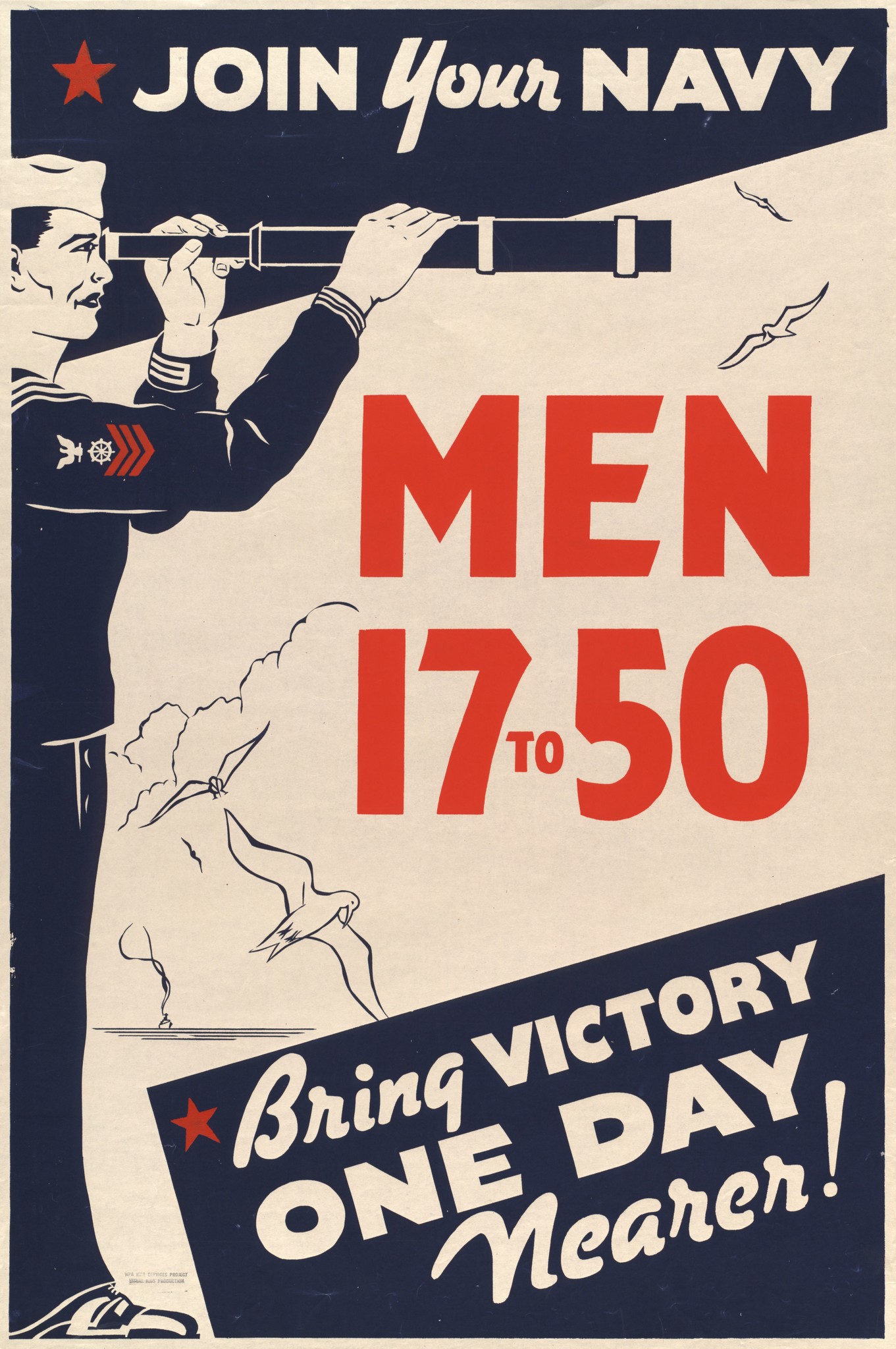 1939-45 Join Your Navy. Men 17 to 50. Bring Victory One Day Nearer!
