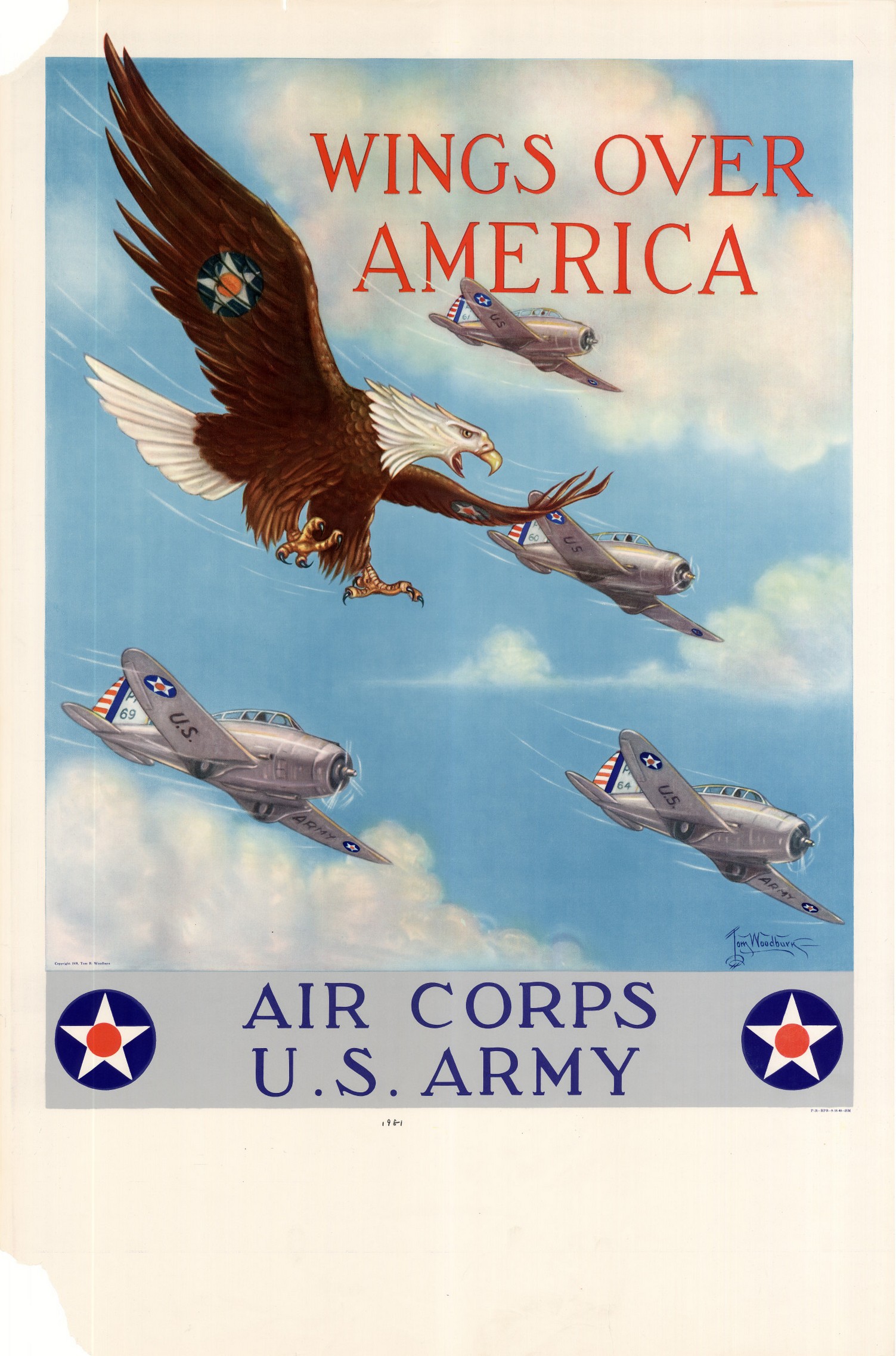 Woodburn, Tom B. Wings over America : Air Corps, U.S. Army., poster, 1939; (digital.library.unt.edu/ark:/67531/metadc284/m1/1/?q=Wings%20Over%20America: accessed March 19, 2017), University of North Texas Libraries, Digital Library, digital.library.unt.edu; crediting UNT Libraries Government Documents Department.