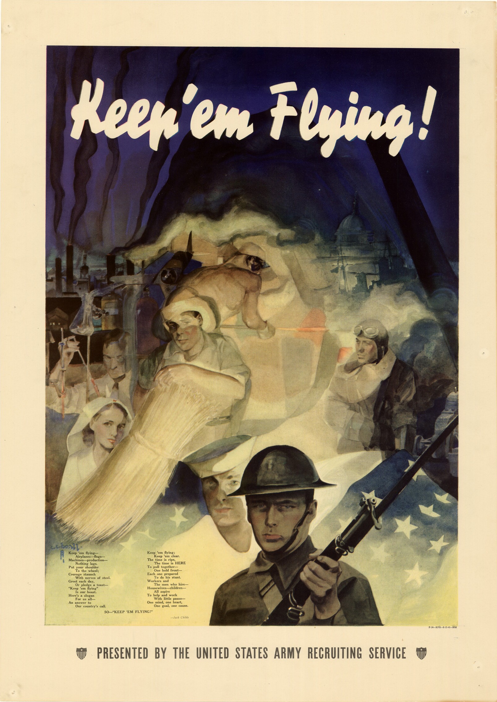 Beall, C. C. (Cecil Calvert), 1892-1967 & Childs, Jack. Keep ’em flying! : presented by the United States Army Recruiting Service., poster, 1941; Governors Island, N.Y.. (digital.library.unt.edu/ark:/67531/metadc577/m1/1/: accessed March 19, 2017), University of North Texas Libraries, Digital Library, digital.library.unt.edu; crediting UNT Libraries Government Documents Department.