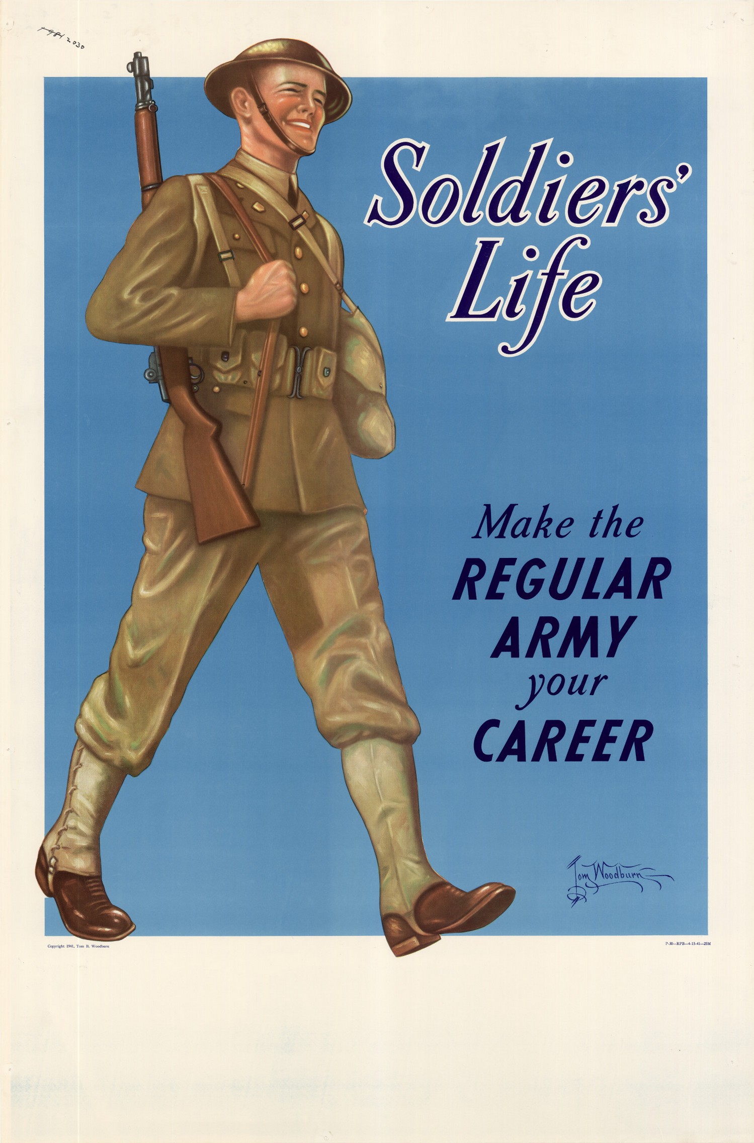 Woodburn, Tom B. Soldiers’ life : make the regular Army your career., poster, [1941]; (digital.library.unt.edu/ark:/67531/metadc274/m1/1/?q=soldiers%20life: accessed March 19, 2017), University of North Texas Libraries, Digital Library, digital.library.unt.edu; crediting UNT Libraries Government Documents Department.