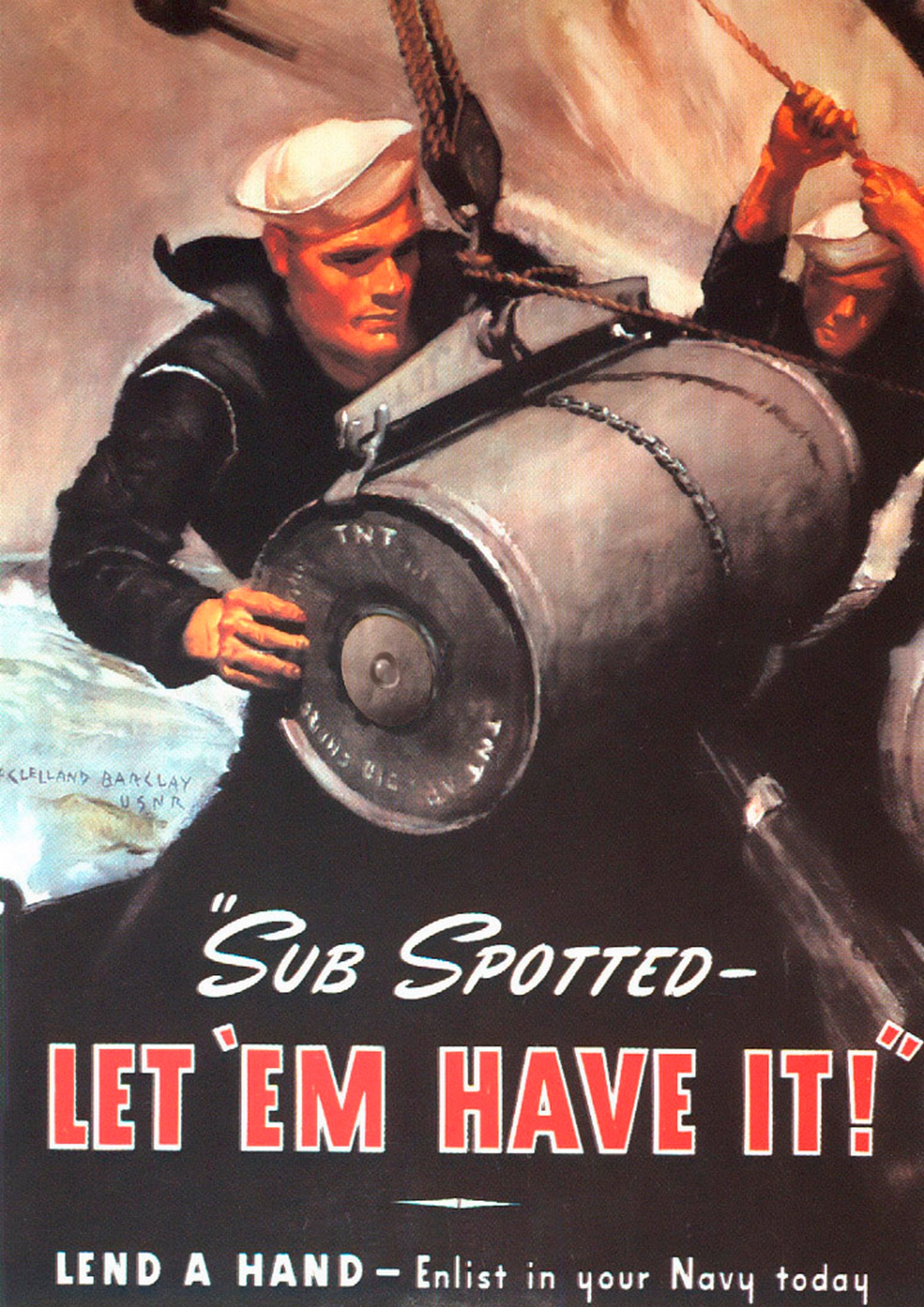 1942 ‘Sub Spotted – Let ‘Em Have It!’ Lend A Hand – Enlist in your Navy today