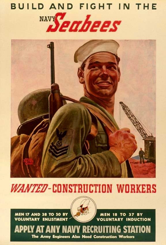 Main » 1939-1945 World War II » WW2 USA Recruiting Propaganda Collection » 1943 Build And Fight In The Navy Seabees. Wanted – Construction Workers