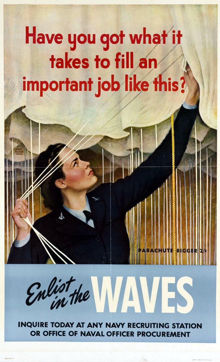1944 Have you got what it takes to fill an important job like this. Parachute Rigger. Enlist in the Waves