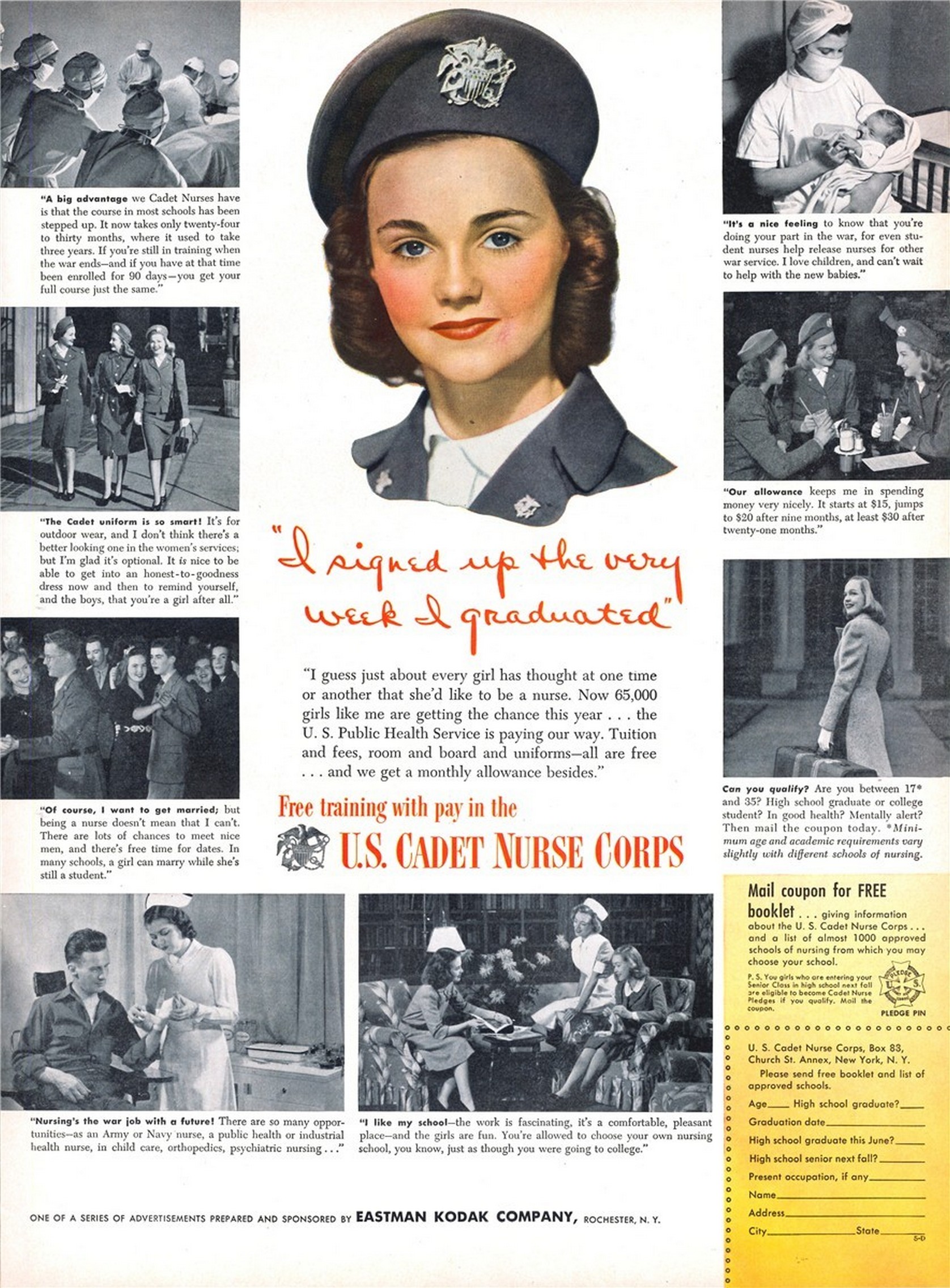 Main » 1939-1945 World War II » WW2 USA Recruiting Propaganda Collection » 1944 ‘I signed up the very week I graduated’ U.S. Cadet Nurse Corps