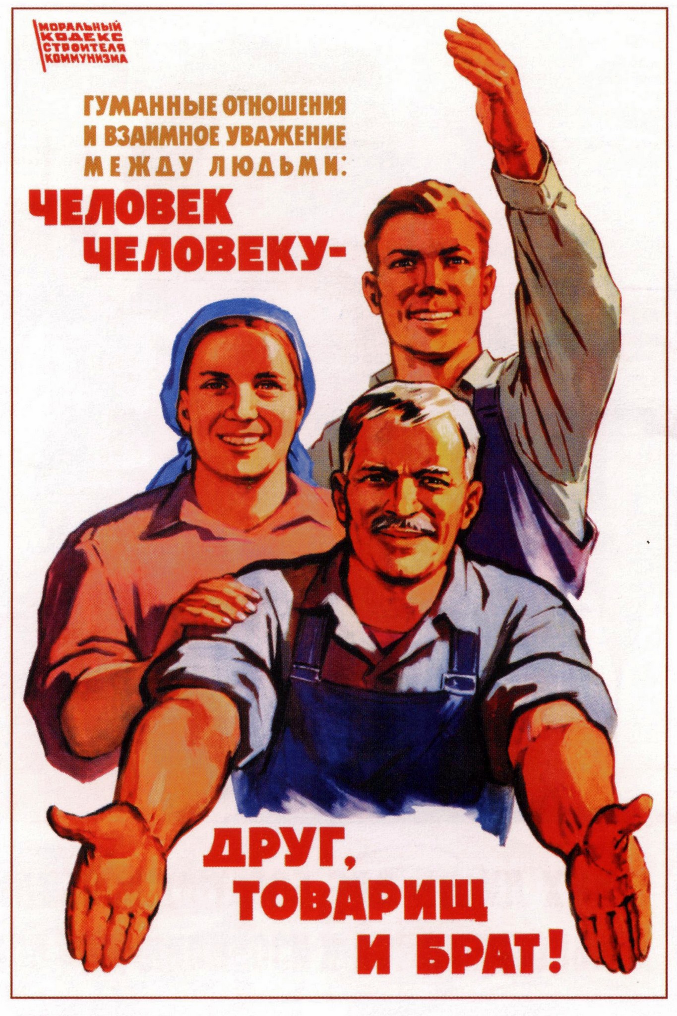 1962 Humane relations and mutual respect between people. Man to man is a friend, a comrade and a brother