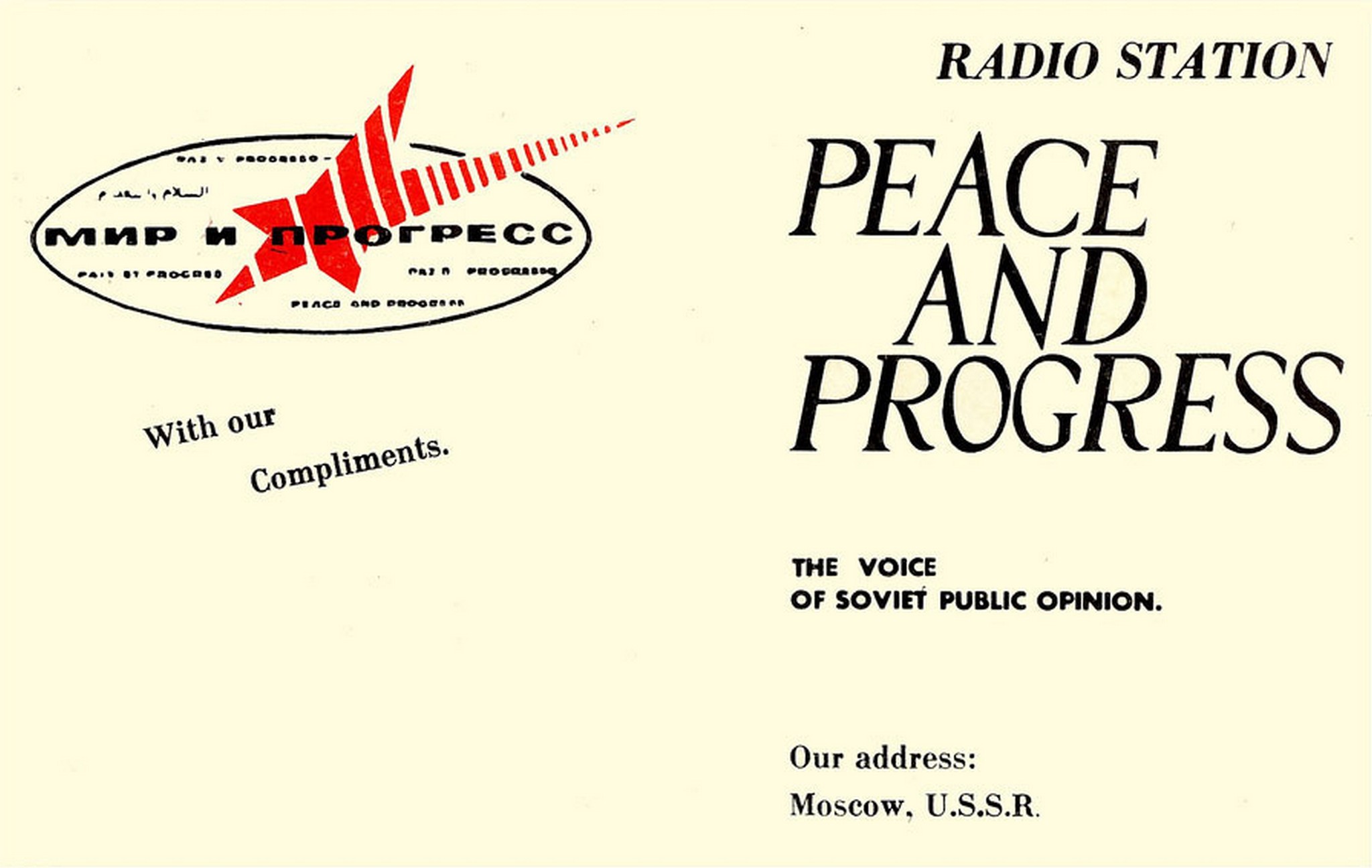 1970 Radio Station Peace And Progress. The Voice Of Soviet Public Opinion