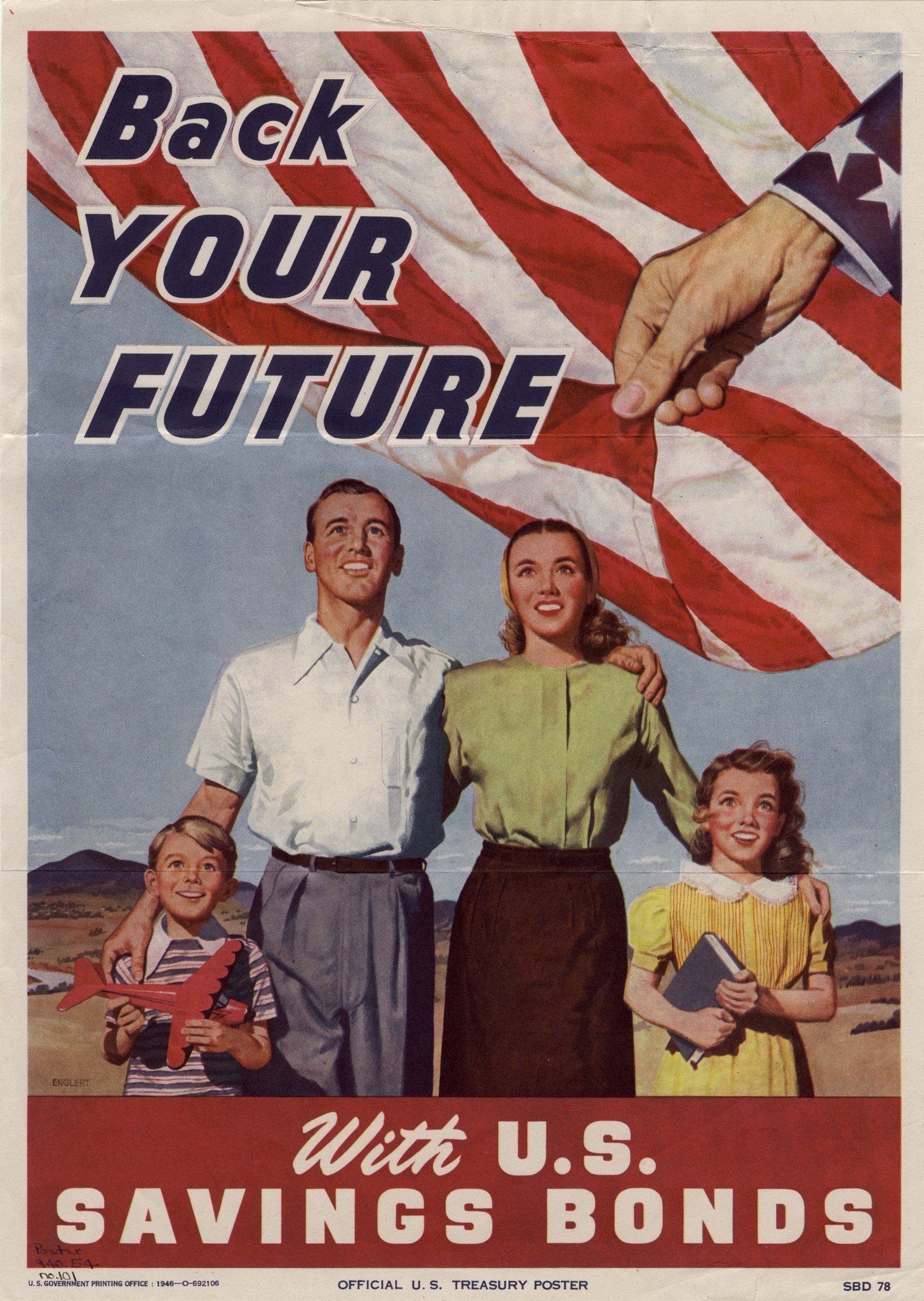Englert. Back your future with U.S. savings bonds., poster, 1946; [Washington D.C.]. (digital.library.unt.edu/ark:/67531/metadc567/m1/1/: accessed November 25, 2024), University of North Texas Libraries, UNT Digital Library, digital.library.unt.edu; crediting UNT Libraries Government Documents Department.