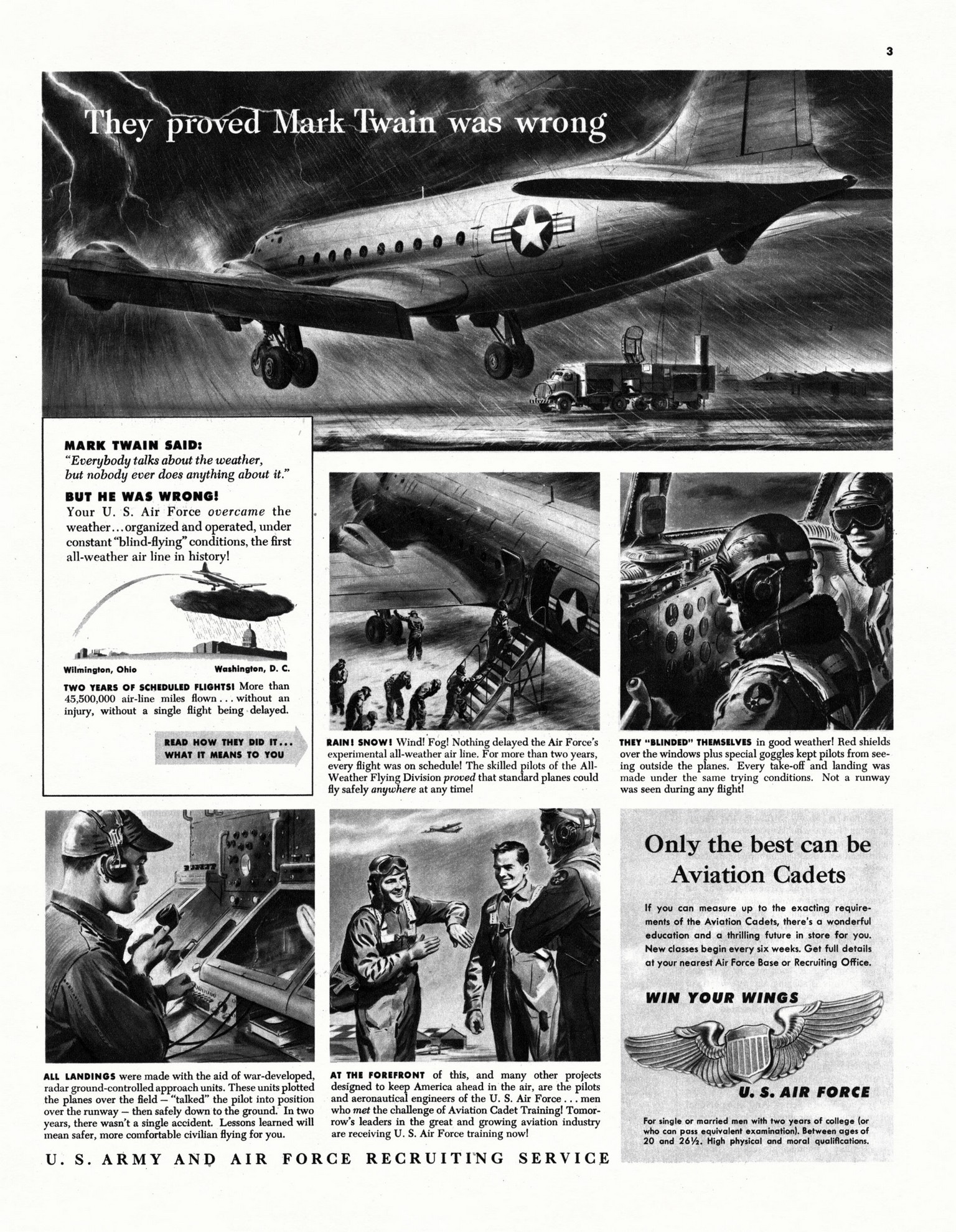 1949 They proved Mark Twain was wrong. Only the best can be Aviation Cadets